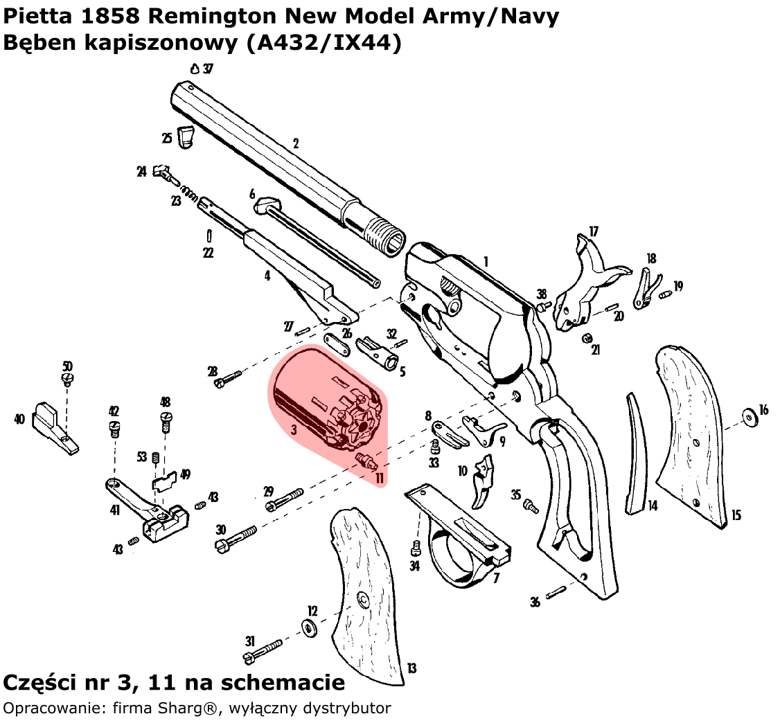 - Schematic of the revolver: 1858 Remington New Model Army / Navy Stainless