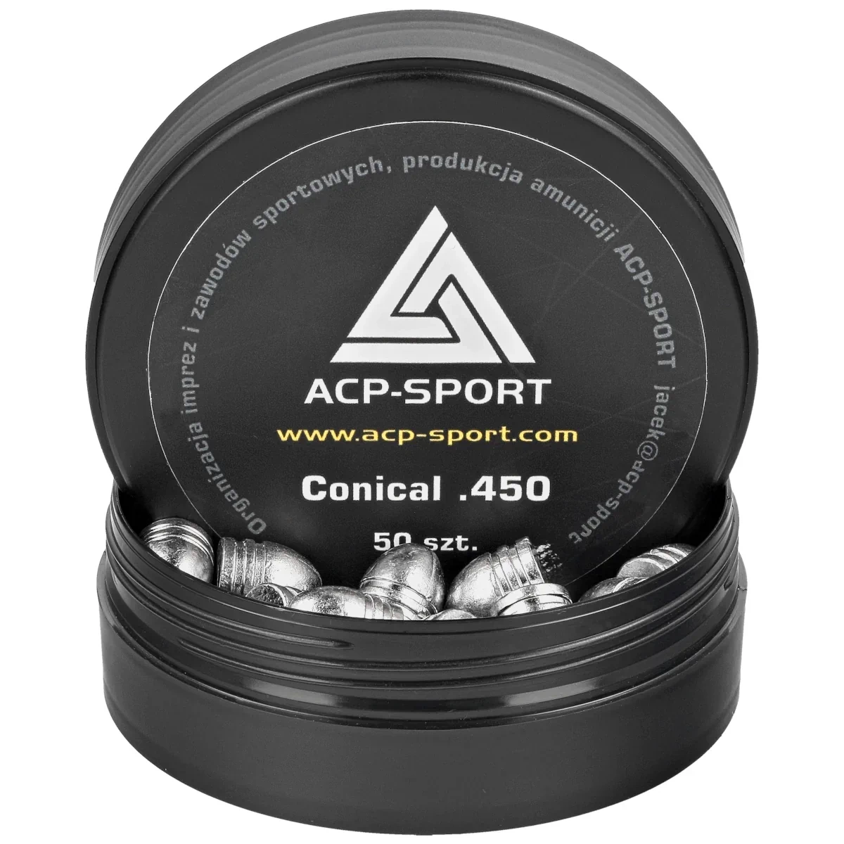 ACP-Sport Conical lead bullets (200 gr) in caliber 450 (11.46 mm) for black powder revolvers. Made of pure lead with no lead-bearing secondary materials, gaps, gaps, other defects found in lower quality products. Designed for shooting from percussion revolvers, incl. Remington, Colt, pistols and black powder rifles in caliber .44. The package contains 50 pcs.