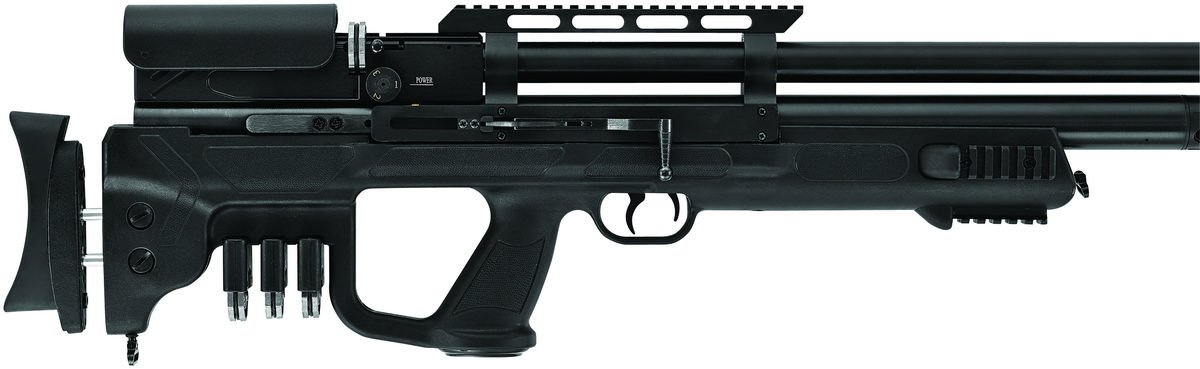 - Gladius Long powerful Hatsan bullpup PCP air rifle with 6-stage adjustment of the shotgun's discharge energy knob depending on the distance needed. By using a flaskless system, compact dimensions were achieved while maintaining the normal barrel length.