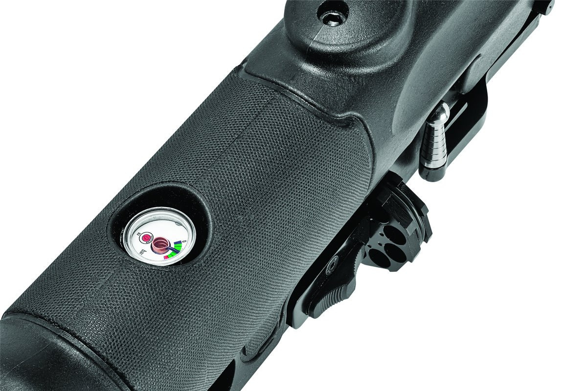 Power supply - the rifle is equipped with w placed under the barrel and inside the flask two fixed compressed air reservoirs of. 500 cc any. When fully charged, they allow you to cast from 15 to 70 effective shots depending on the caliber (data for version FAC*). The pressure gauge allows you to constantly monitor the pressure in the tanks, and thus the degree of their charge. 130 bar minimum working pressure in the cartridge, recommended by the manufacturer. Due to its large capacity, charging the cartridge only from the technical cylinder or dive (300 bar).