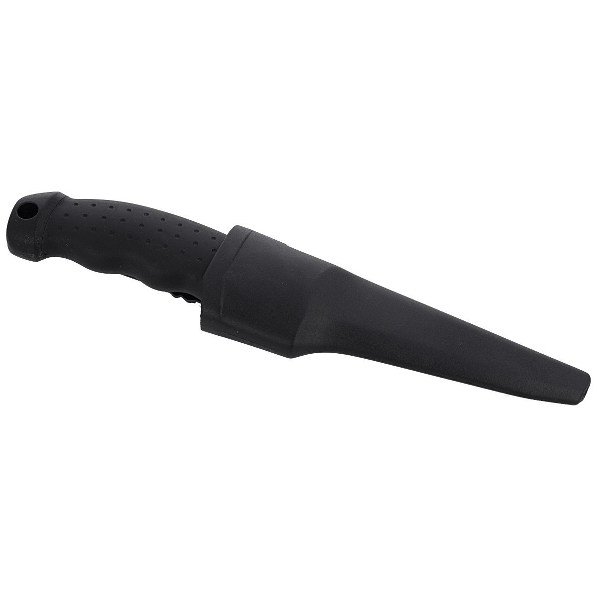 Handle - in black color, moisture-resistant, made of hardened plastic covered with non-slip pattern, provides a comfortable, secure grip. Despite its relatively small size, the knife lies securely even in large hands. The rounded shape of the head prevents the hand from slipping during operation.