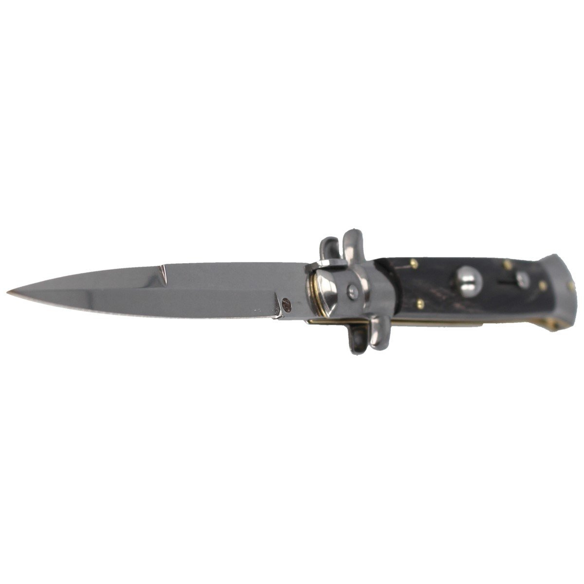 - Frank Beltrame Stiletto Bayonet Bull Horn 23cm. Traditional hand-folded Italian spring knife - buffalo horn facings. The iconic folder when opening the hundredths-of-a-second blade emits a distinctive click that sets it apart from other spring knives...