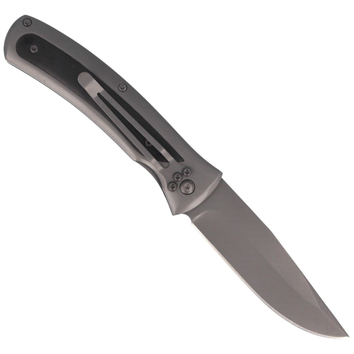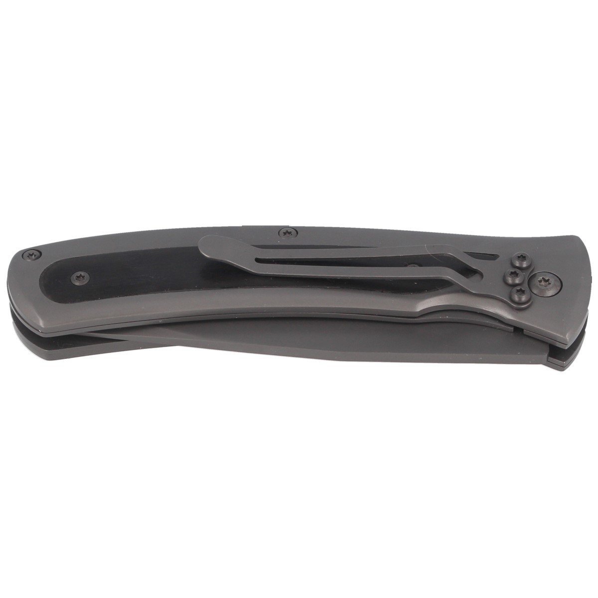 Handle - made of stainless steel coated with titanium-based coating, with sandalwood inlays (inlays). Chamfered edges of the covers eliminate sharp edges and inlays improve grip security. Open-backed design reduces weight and facilitates cleaning. The single-position, right-handed clip allows the knife to be carried in a tip-down position , with the tip of the blade down.