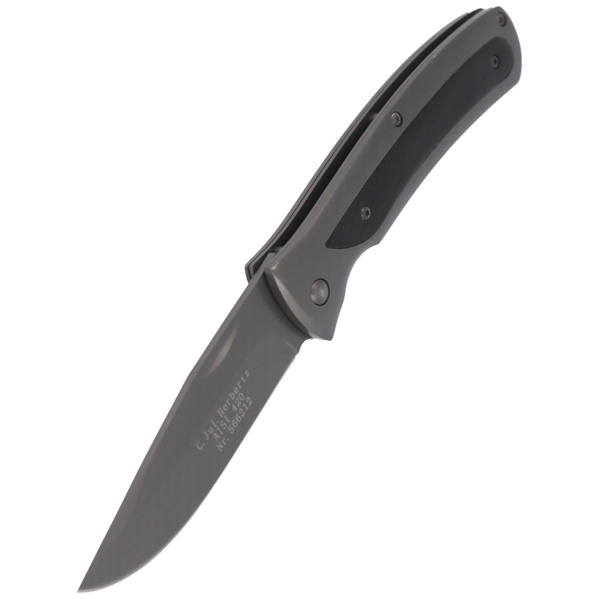 • 566212 Titanium Coated Steel/Sandal Wood, Titanium Coated, elegant folder from German brand Herbertz Solingen. Blade made of 420 stainless steel with titanium coating, ergonomic steel handle with sandalwood inlays.