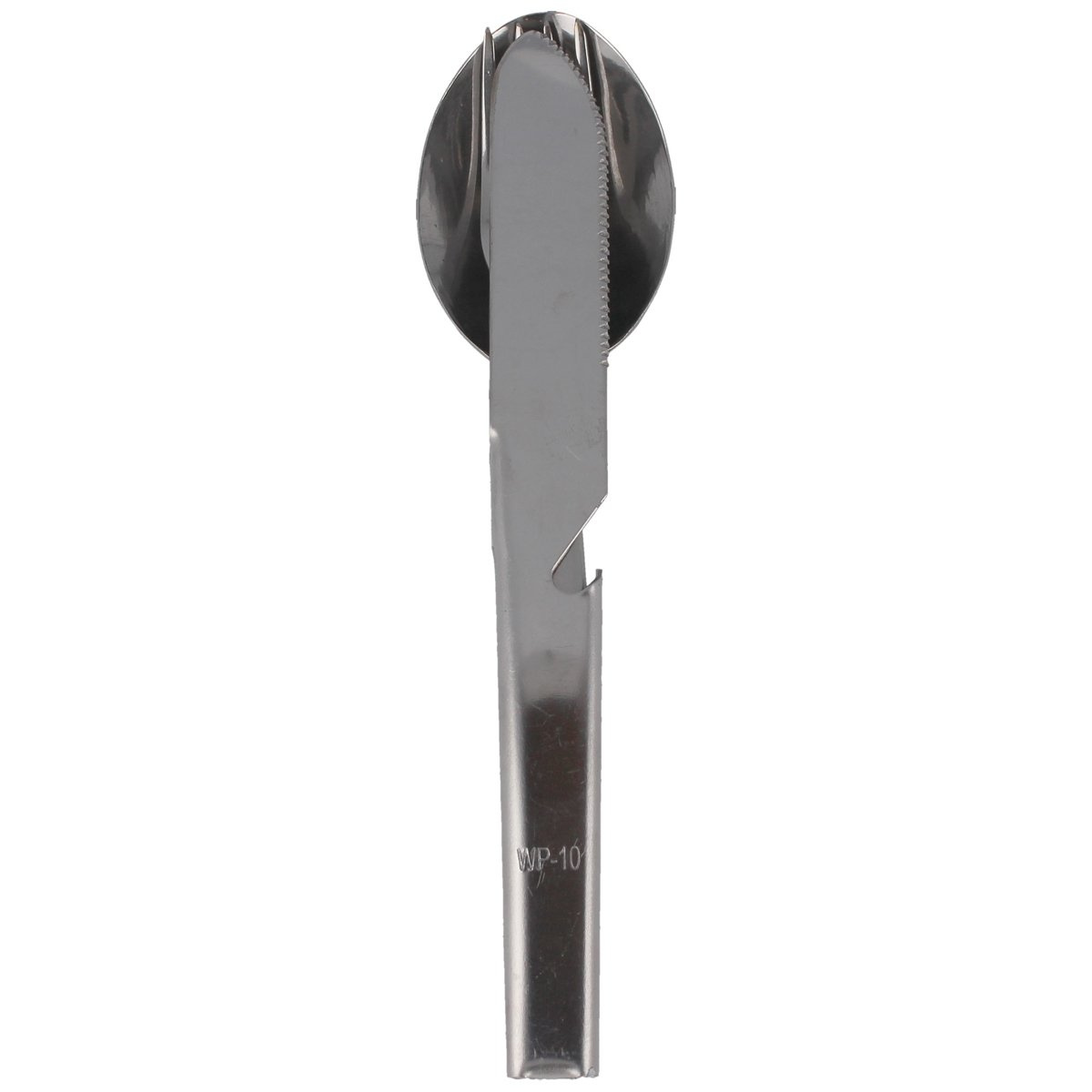 This is classic, easy to assemble set containing a spoon, fork and knife with a saw. In addition, the knife has an opener for capsules and cans, you can use it as a handle for Polish military mess tin - which prevents burns from hot dishes. After assembling the set (inside the knife linings) the toolbox takes up little space. Handy and durable, made of easy-to-clean polished stainless steel.