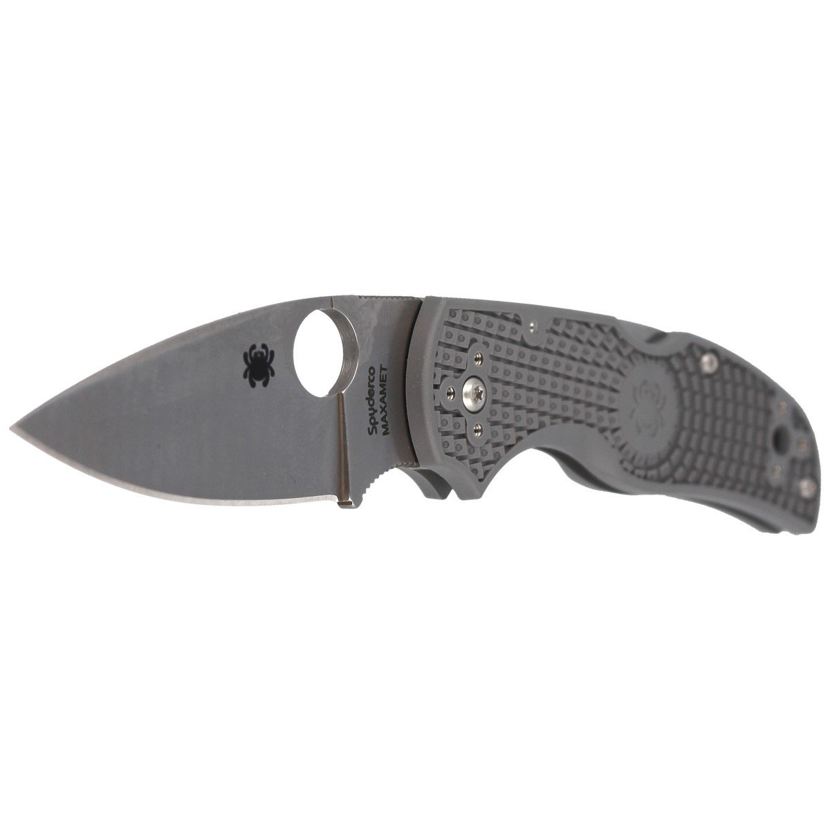 Blade - with a Spear Point profile, 3.2 mm thickness. Smooth blade (Plain type) was made with a full flat cut (Full Flat Grind), reducing the weight of the knife and increased cutting properties. The Satin Finish (semi-matte) coating eliminates glares. An enlarged 14 mm round SpyderHole cut-out (Spyderco patent) allows the knife to be opened with the thumb. High-quality (made in the USA) solid blockade (Back-Lock type) guarantees better smooth operation. Notched thumb ramp and Finger Choil (profiled undercut finger between the handle and the cutting edge) increase control over the knife.