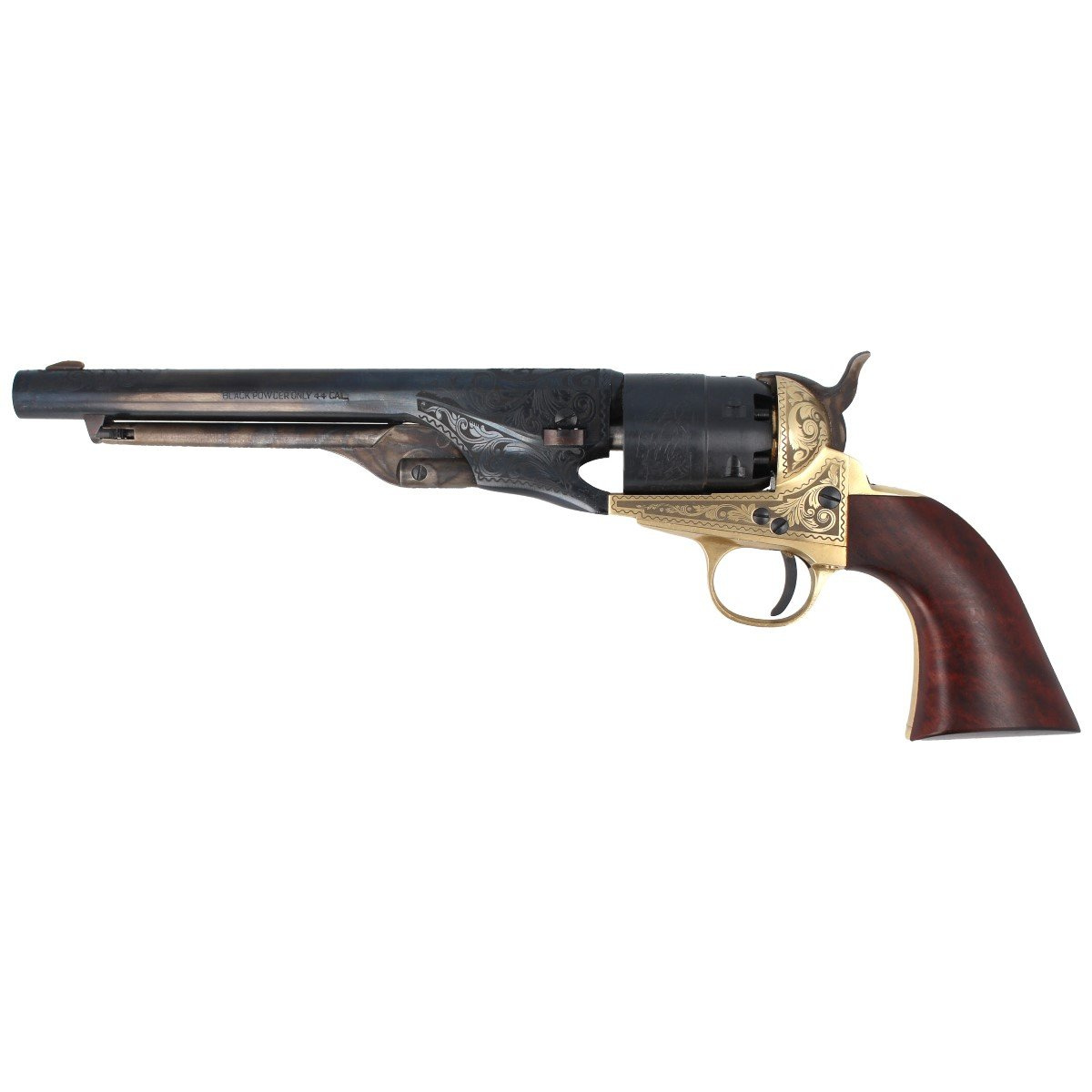 - 1860 Army DeLuxe .44 6-shot Colt cal black-rifle revolver .44. Version with 8" barrel used by the Union Army during the Civil War. Loaded with a firing pin with a brass frame engraved drum with a scene of the victory of the Second Texas Navy at the Battle