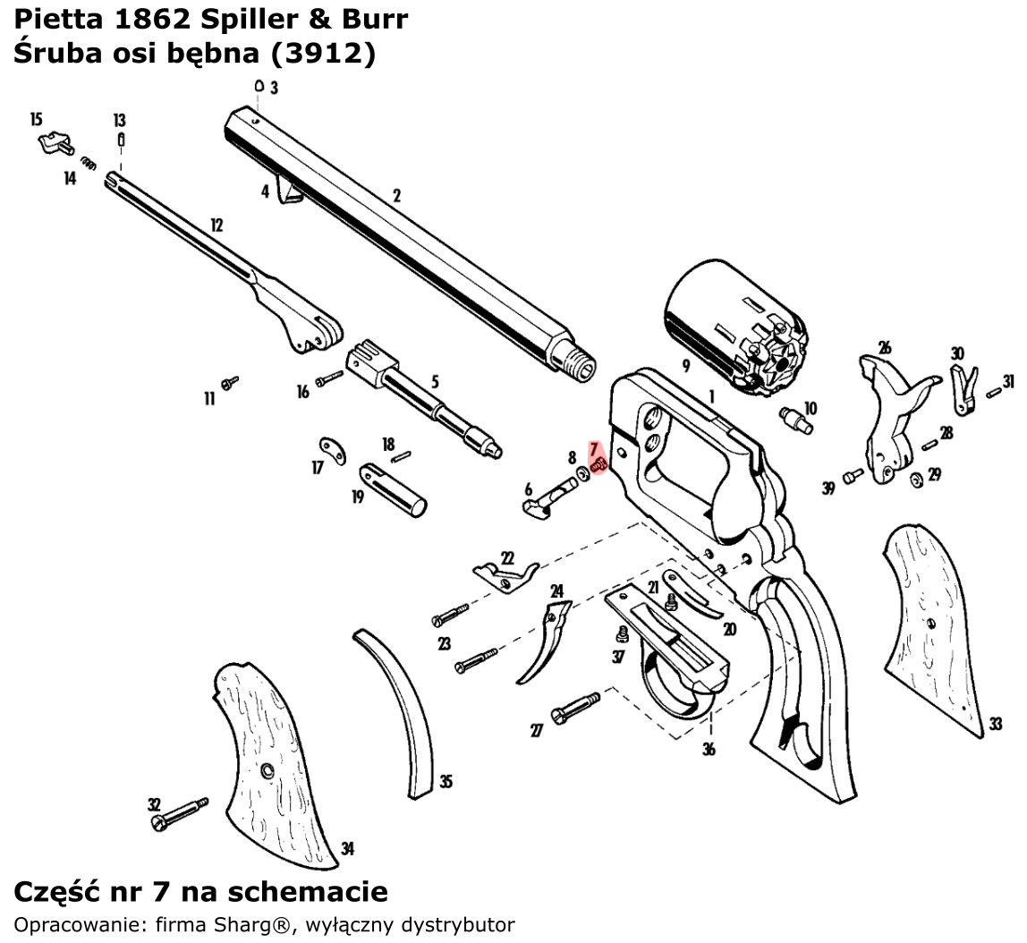 • 3912 (service) screw axis of the drum of the revolver Pietta 1862 Spiller & Burr .36