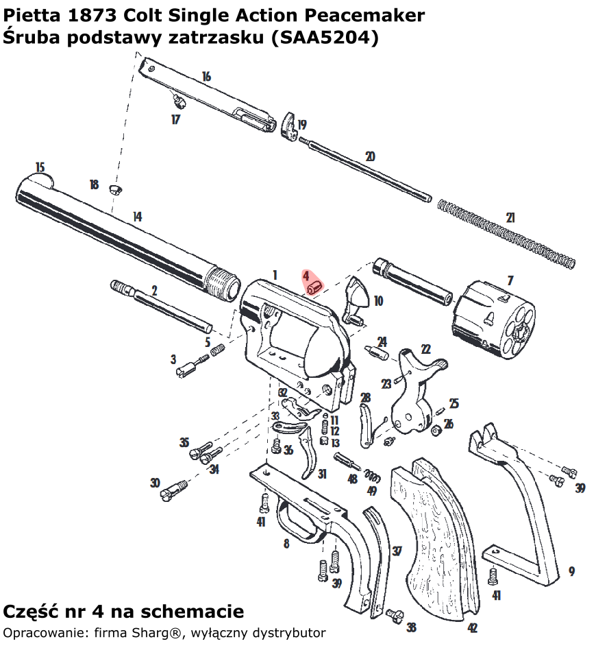 • SAA5204 (service) screw base latice from Pietta. Designed for 1873 Single Action Steel revolvers and 1873 Single Action Stainless, the most famous Samuel Colt revolvers also known as Peacemaker / Cattleman.