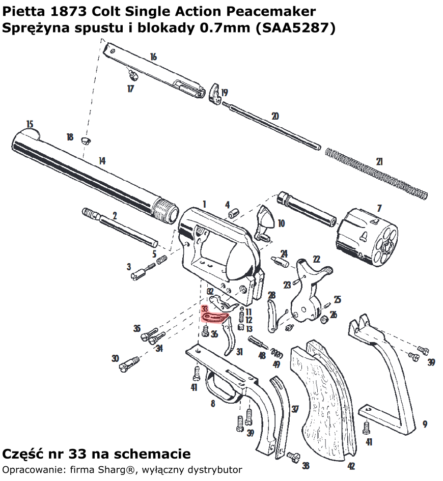 - SAA5287 (service) double-sided spring trigger and drum lock (0.7 mm) of the Italian company Pietta. For 1873 Single Action Steel revolvers and 1873 Single Action Stainless revolvers.