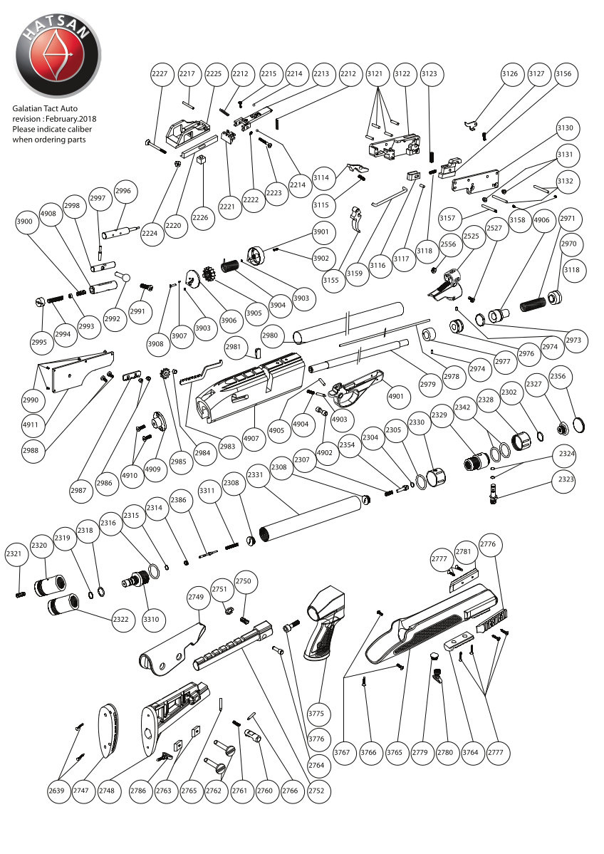 2980 - (service) barrel shroud (mechanism group) for Hatsan Arms airguns. Designed for PCP (Pre-Charged Pneumatic) rifles: Barrage, BullMaster, Galatian Tact Auto, Galatian Auto V, Galatian Auto VI.
