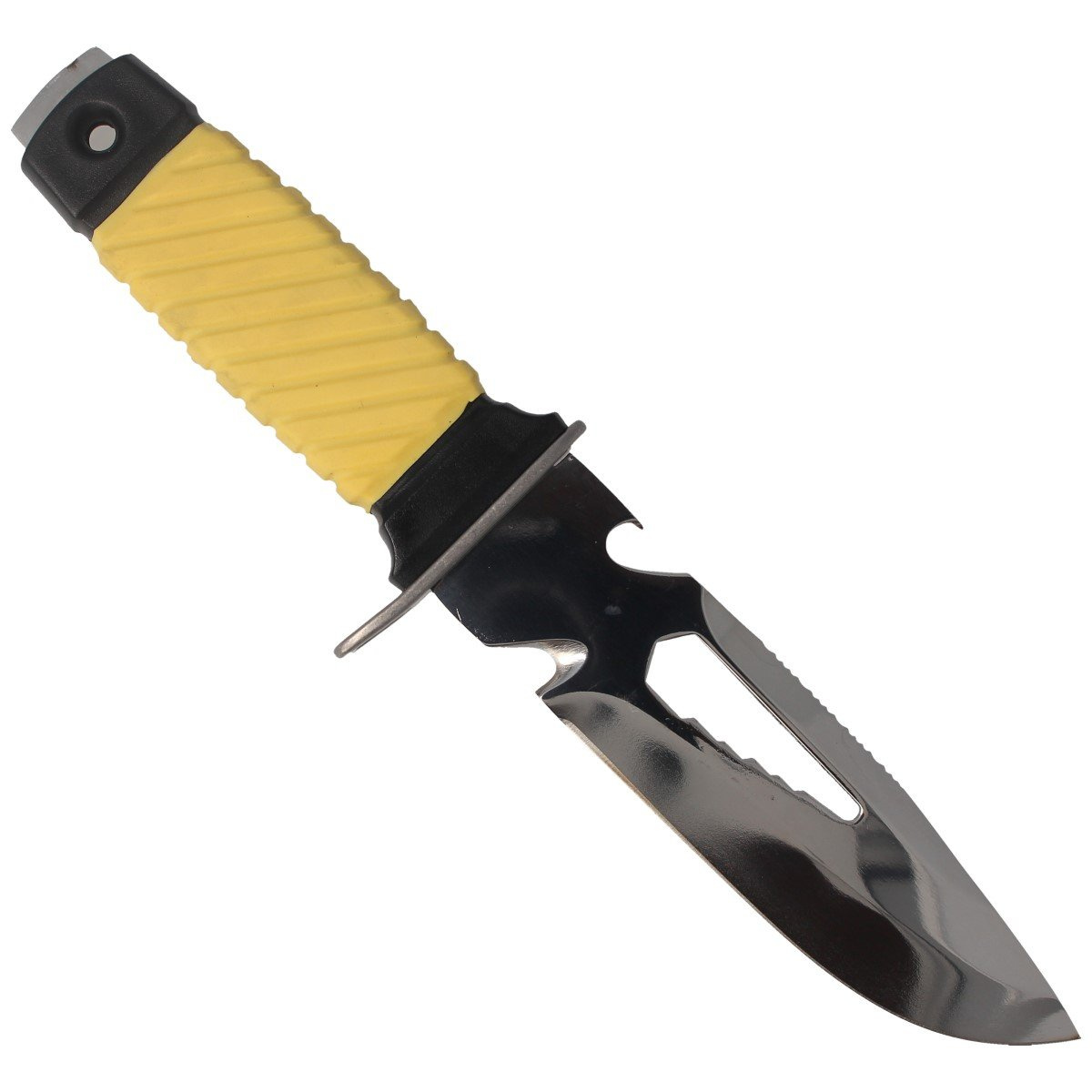 • SQUALO15 M GG YELLOW solid, multifunctional diver's knife with hammer, wrench, shackle by Italian company MAC Coltellerie. An indispensable piece of equipment during diving expeditions. Head of polished stainless steel 1.4116 with high resistance to corro