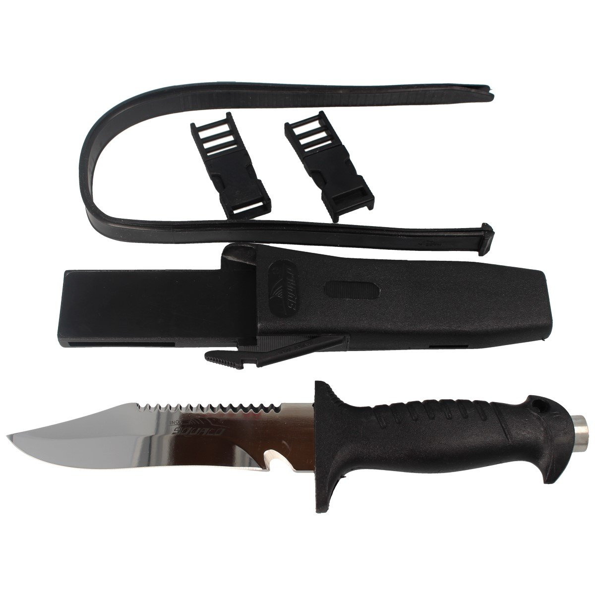 - SQUALO15 MR BLACK, universal knife for divers with hammer by MAC Coltellerie. Indispensable during diving expeditions and on land. Head with clip point profile from polished stainless steel W 1.4116 with high resistance to corrosion. Blade length 140 mm.