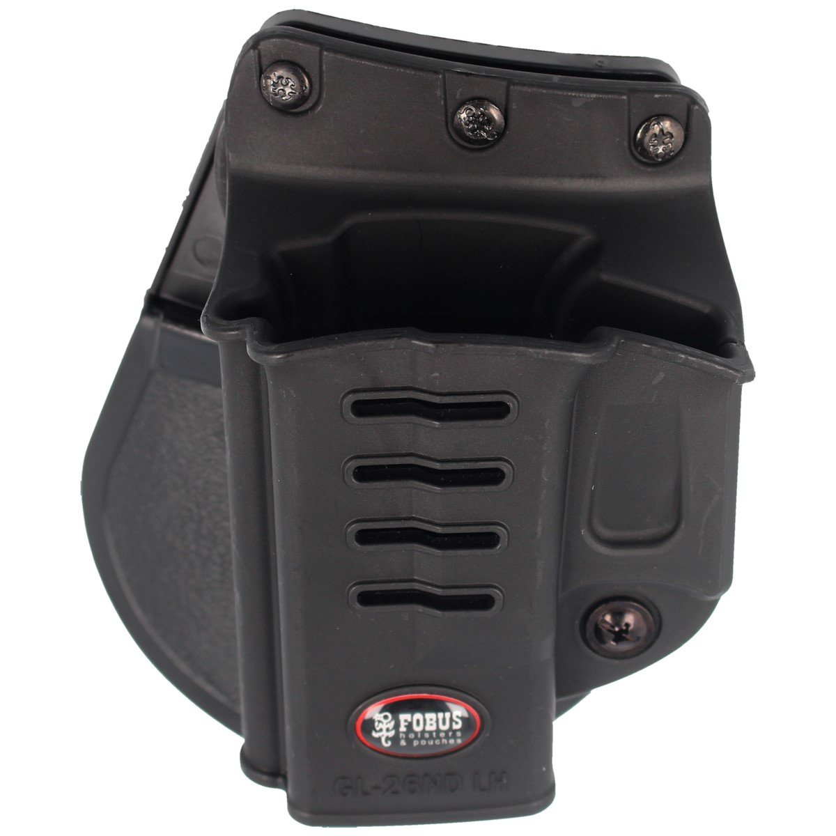 • GL-26 ND RT (Rotating Paddle) Fobus open holster, left. For Glock 26, 27 pistol. ND / Evolution-2 new generation with an additional screw at the bail to adjust the holster pressure. It affects the force with which the weapon is held in the holster or is d