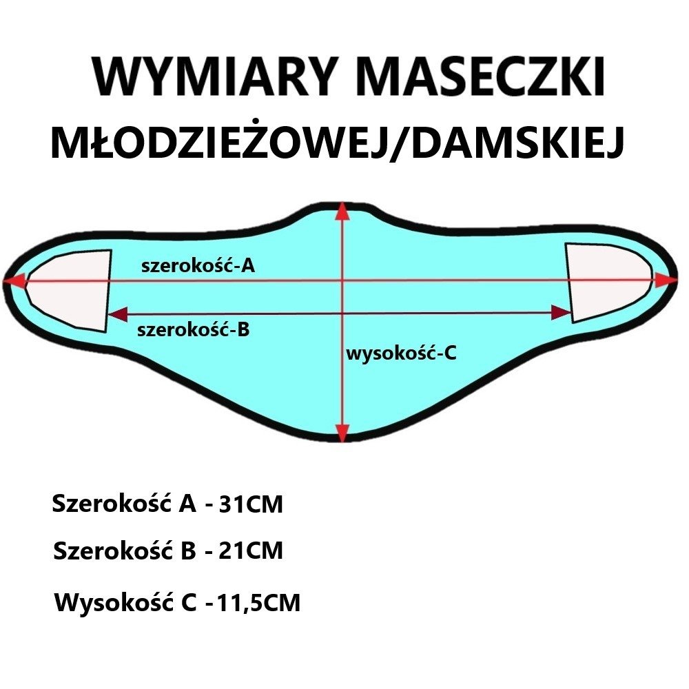 Protective mask, reusable. It guarantees freedom of use, adapts to the shape of the face. It provides free air flow, and does not cause breathing problems. This is very important in the upcoming summer season, at high temperatures. The mask does not cause abrasions, its breathability makes sweating and moisture deposition from the inside is minimized. At the same time, it is a protective barrier against external factors, protects both us and others against germs that we can potentially spread. The mask is dedicated to people with smaller facial curves, women and teenagers. It is made of one piece of fabric, by laser cutting. With graphics all-over.