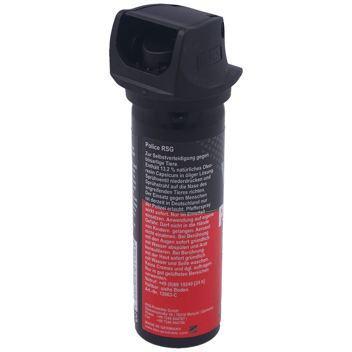 VESK RGS Police is a new line of KKS pepper spray. It is a non-flammable gas in the form of a gel. The capacity of the product is 63ml. Dedicated to the tire in front of the striker / group of attackers or aggressive animals.