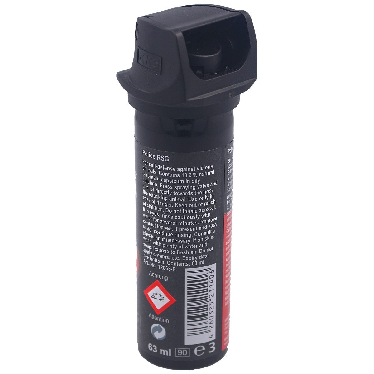 • VESK RGS Police non-flammable foam pepper gas for professional use with 13.32% OC, 2mln SHU sharpness, 63 ml capacity. Fruit of cooperation between KKS company and officers of the German police's prevention squads. Head with flap and hood