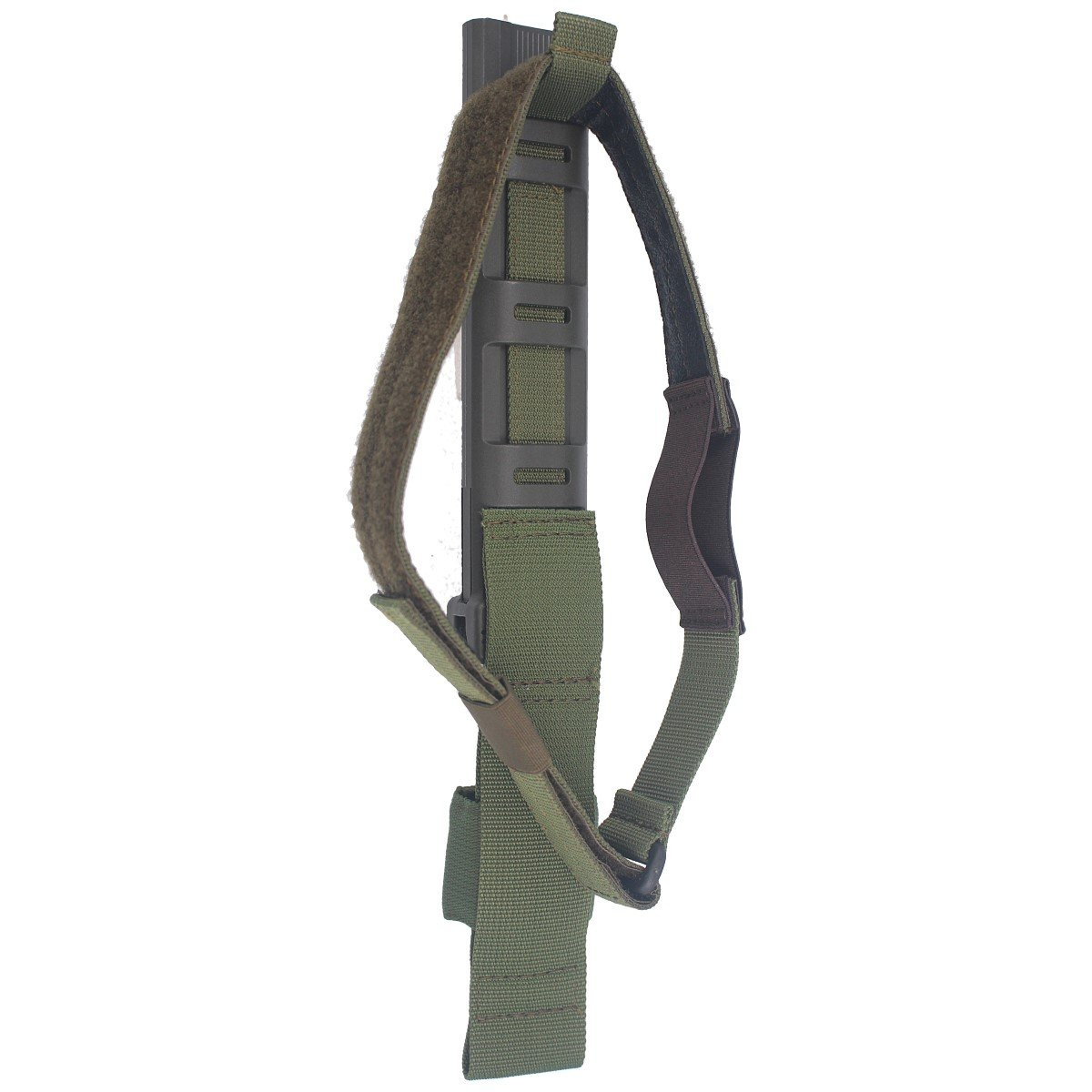 Sheath - Ranger Green injection molded nylon sheath with M.O.L.L.E. strap attachment. (Modular Lightweight Load-carrying Equipment). Universal openwork holster protects the knife from falling out (snap), reduces weight and facilitates drying the blade and the dampening system prevents the blade from rattling when moving. Lower part of holster with Velcro strap to secure knife to thigh.