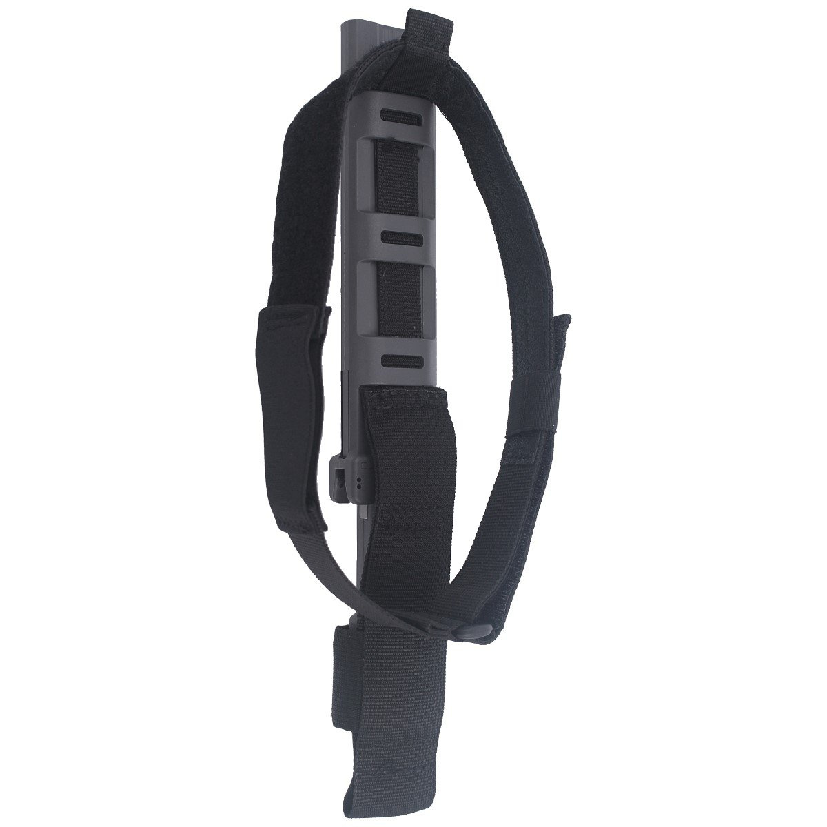 Wolf Grey injection molded nylon sheath with M.O.L.L.E. strap attachment. (Modular Lightweight Load-carrying Equipment). The universal openwork holster keeps the knife from falling out (snap), reduces weight and makes it easy to dry the blade. Lower part of holster with Velcro strap to secure knife to thigh.
