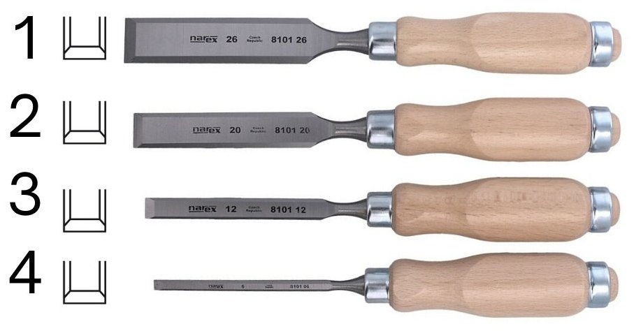 - 863010, a four-piece straight wood chisel set with side chamfer from the Narex Profi series.