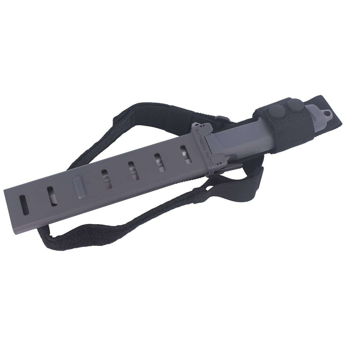 Sheath - lightweight, injection-molded shell made of impact-resistant reinforced Nylon. The minimalist holster protects the knife from falling out (snap with trigger lever), and the vibration-absorbing dampening system prevents the blade from rattling during movement. The symmetrical design allows the holster's handling to be adjusted for both right- and left-handed users by moving the trigger lever to the other side of the sheath. The universal openwork shell design open at the bottom reduces the weight of the kit and prevents water from collecting inside and reduces the weight of the kit. Reduced to a minimum nylon webbing allows the sheath to be quickly attached to the belt or under the webbing of the M.O.L.L.E. (Modular Lightweight Load-carrying Equipment) system. A Velcro-fastened lower sheath with a thigh band with rubber reinforcement prevents the sheath from moving on the thigh.