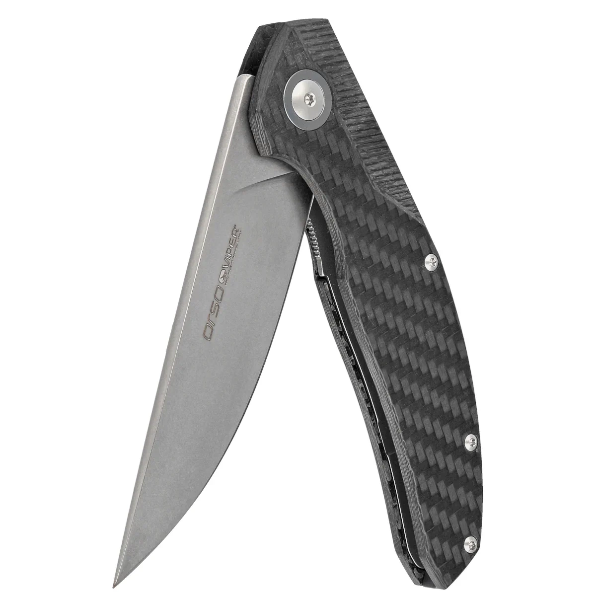 The Orso Carbon Fiber, Stonewashed design by Danish custom knife maker Jens Ansø is an outstanding example of the design principles of 'where form follows function' quickly becoming the template for the ideal E.D.C. knife for many blade enthusiasts. Sleekly opened by a ball-bearing-assisted fast flipper flipper system, the folder combines utility with the cutting-edge technologies and craftsmanship for which the Viper brand is renowned. An upgraded version of the Orso folder with a Lohmann LO-QPM 20-4 stainless steel blade.