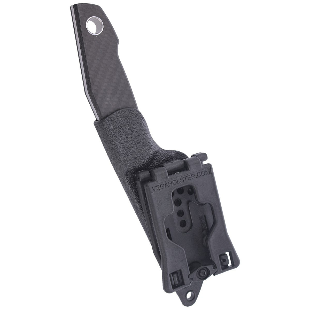 Vega Holster company. Lightweight, made of Kydex plastic in black with multi-position Tek-Lok fastener. It facilitates discreet carrying and quick retrieval of the knife.