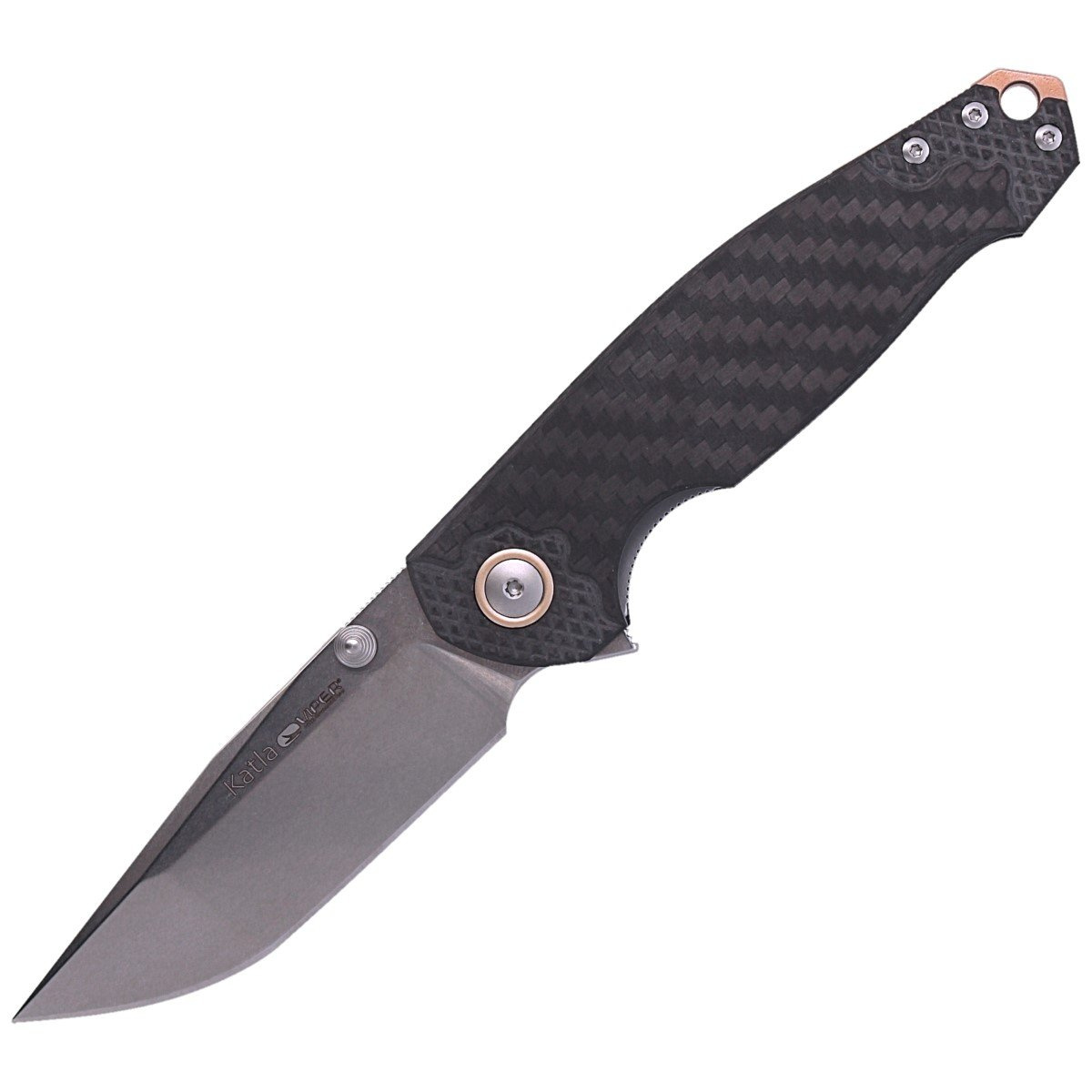 • Katla Carbon Fiber 3D CNC, Satin a unique knife aimed at a discerning audience, combines elegant style with the finest materials. The design by Jesper Voxnaes combines 2 different blade opening options, ball bearing pivot, deep clip, Viper brand quality.