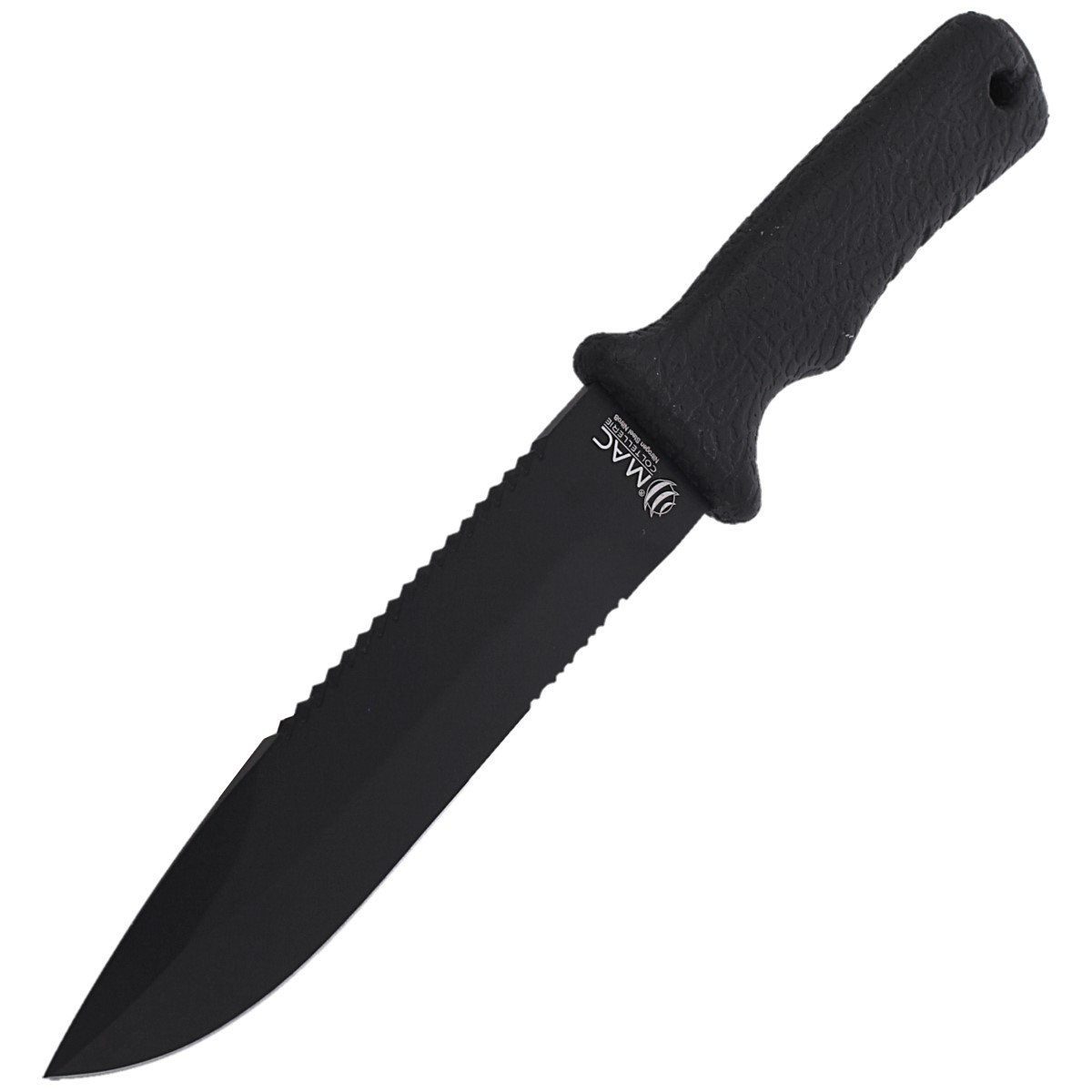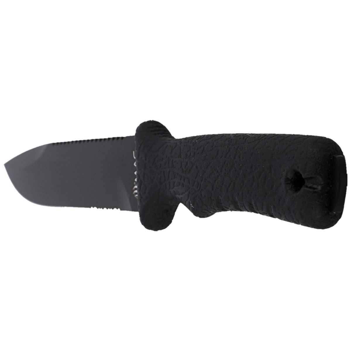 Blade - massive Drop Point coated with scratch-resistant, matte non-reflective IDROGLIDER GOLD® Black coating. The combo blade, Plain and Serrated (saw) derived Flat Grind, provides excellent cutting edge geometry and cutting performance with low friction. On the back of the blade is a multi-functional saw for cutting hard materials, plastics and fibrous materials such as ropes, cords, lines or nets.