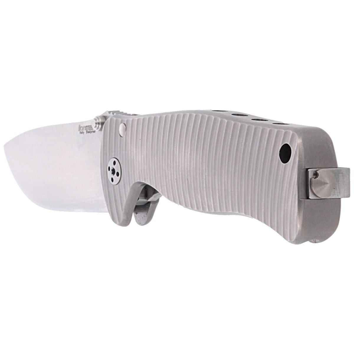 SR2 Natural Grey Titanium, Satin Blade (Solid folding knife) by Italian manufactory LionSteel. Compact version of the famous SR-1, the first folding knife with exclusive Solid Knife technology. Lightweight and durable compact folder by E.D.C.