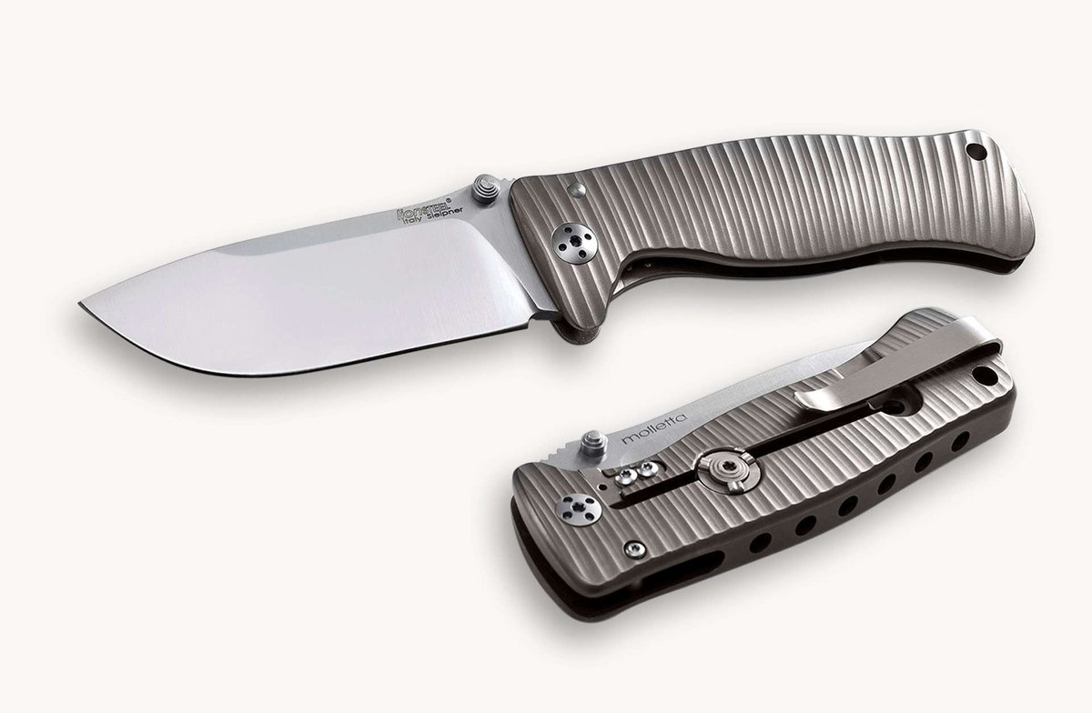 - SR2 Grey Titanium, Satin Blade by the Italian manufactory LionSteel. Smaller version of the famous SR-1 first folder with exclusive Solid® Knife technology. Lightweight durable compact EDC knife. High-alloy Sleipner Uddeholm tool steel blade.