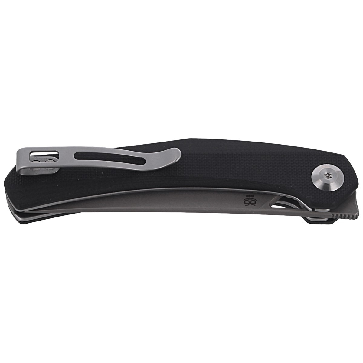 Handle - chamfered facings made of black G10 plastic. Smooth surface of the liners, but with a noticeable texture improving grip. The whole is mounted to stainless steel liners. Simple, solid construction gives assurance of many years of use. Backspacer made of black G10. The pivot is decorated with stylized logo of Civivi brand. Two-position deep left/right metal deep carry bayonet clip allows you to carry the knife discreetly in your pocket in tip-up position.