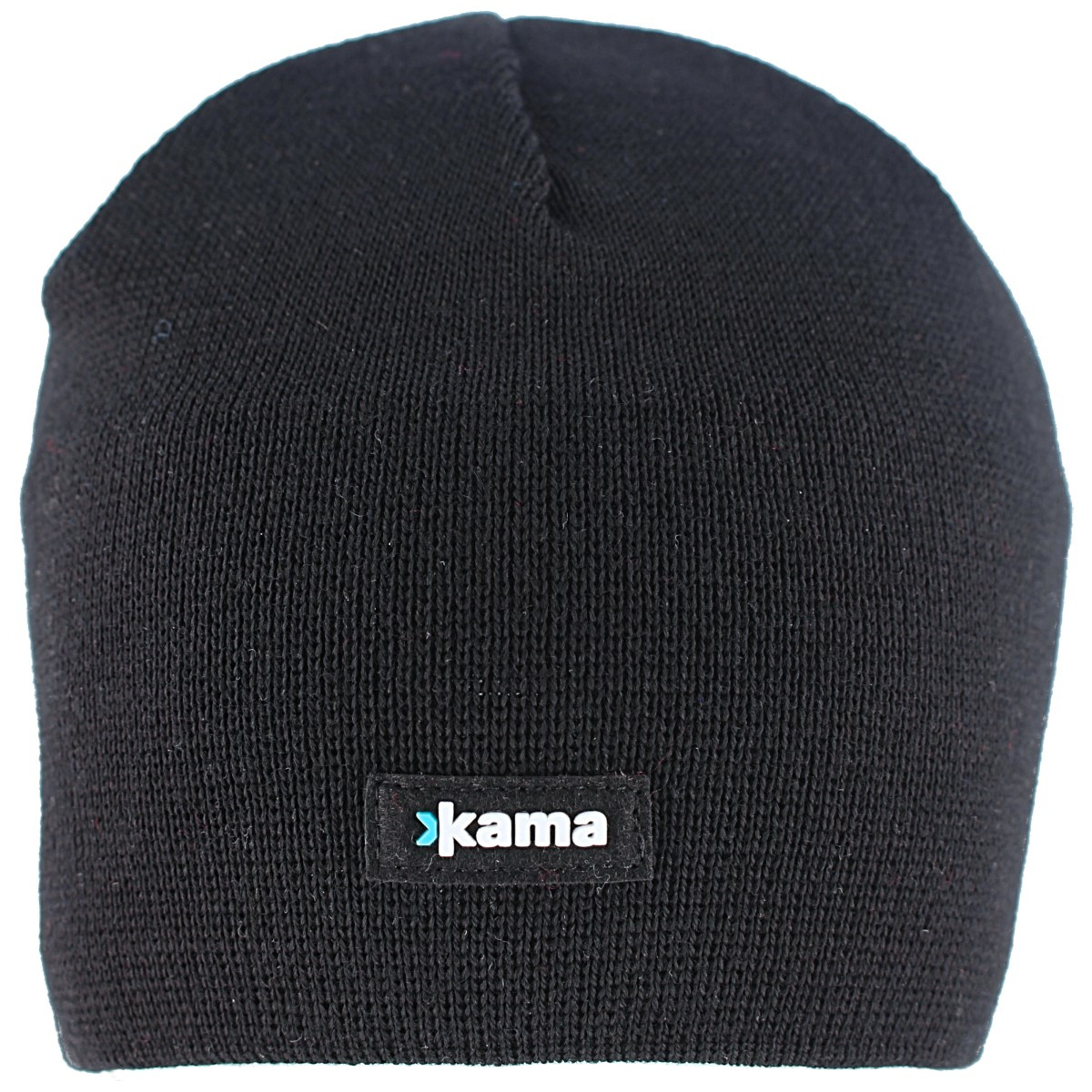 Kama Knitted 100% Merino Wool / Polycolon Band Beanie, Black (A02-110)