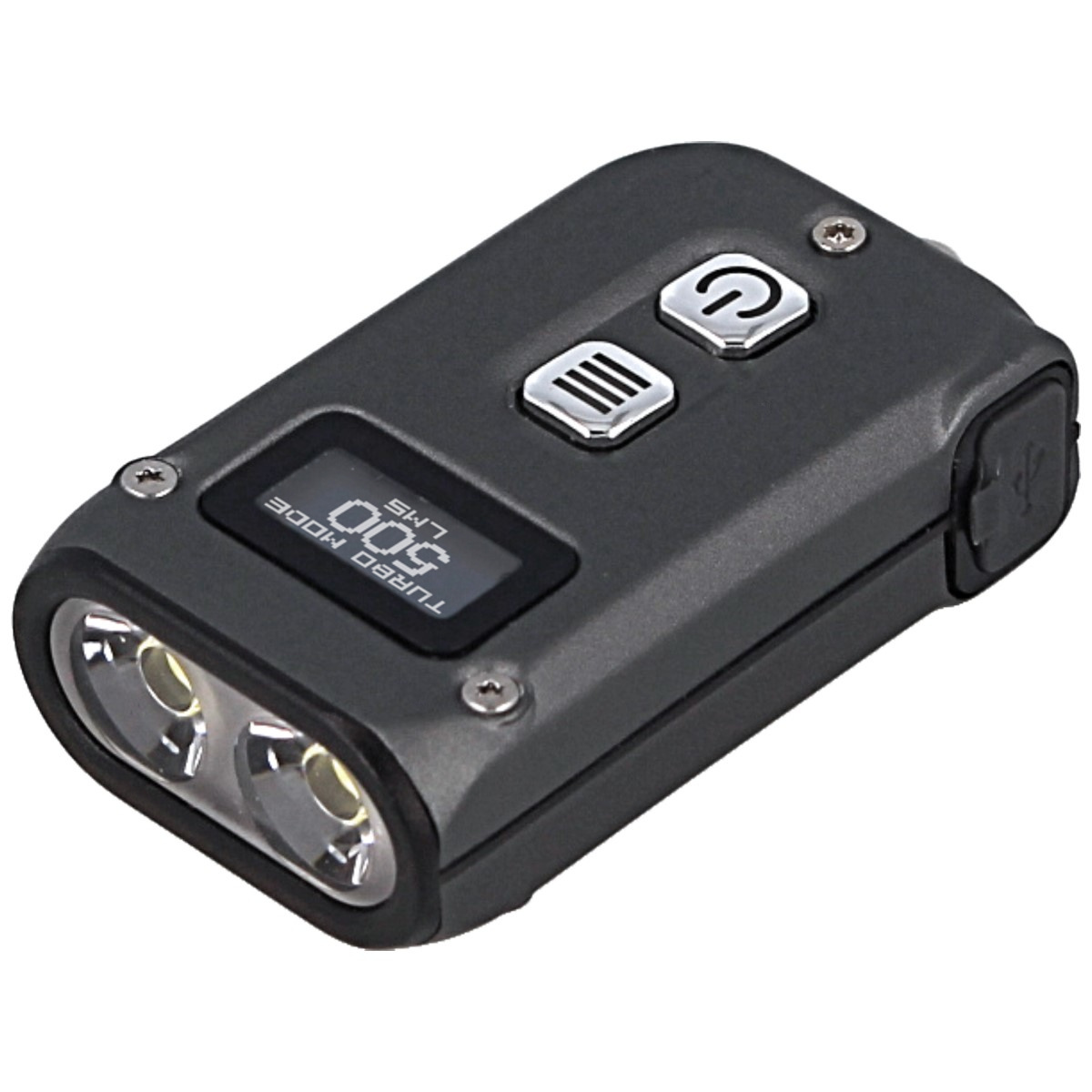 - TINI2 Gray compact flashlight by NiteCore capable of producing an impressive amount of light. Essential for situations where an additional light source is required. Built-in Li-Ion rechargeable battery charges easily with a USB-C cable. Five light modes.