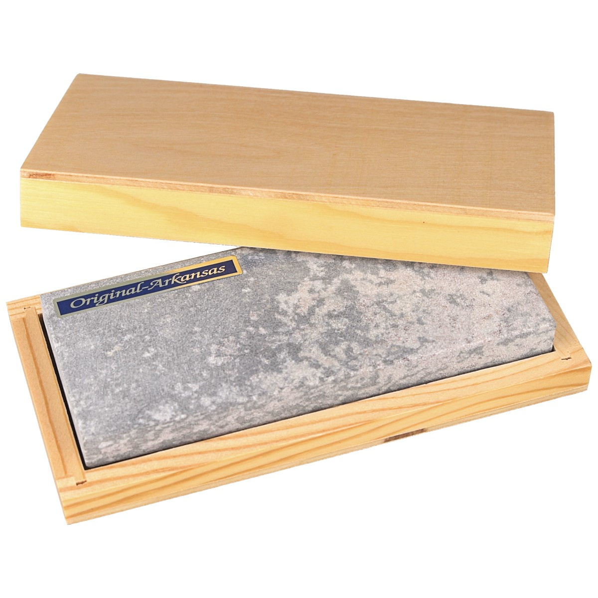 • Original Arkansas original stone sharpener by Herbertz Solingen - allows full control over the sharpening process. Natural flat stone for sharpening knives, cleavers, machetes, scissors and small tools. The stone was packed in a wooden box