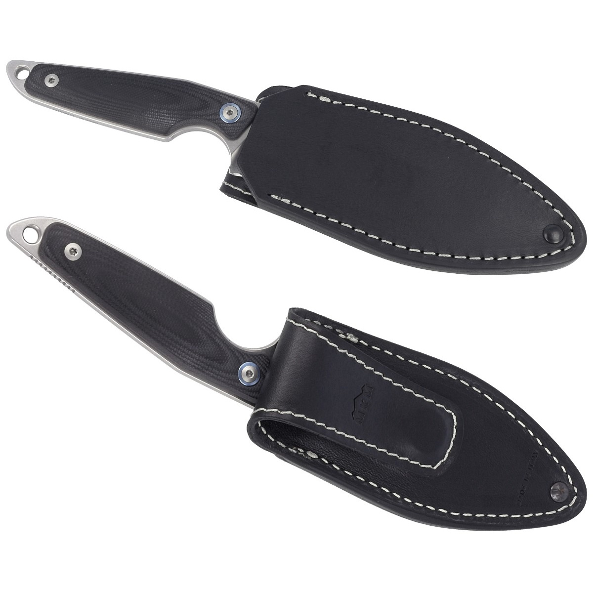 Handle - linings made of smooth, polished G10 (fiberglass pressed with synthetic resin). Screwed directly to the steel, they provide a virtually indestructible construction. All clad knives come with a 6/8 Torx key screwdriver, which allows you to remove the sheaths and convert the knife into a skeletonized handle grips version. The unique ergonomics allow the knife to be held both ways. On the back of the handle an enlarged lanyard hole, a hole for a cord.