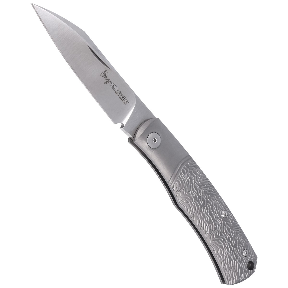 - Hug Gray Titanium Wolf, Satin lightweight folder equipped with SlipJoint mechanism. Design by French custom knife maker Sacha Thiel. Slim handles with wolf fur pattern and modified Wharncliffe blade for an aggressive look and functionality.
