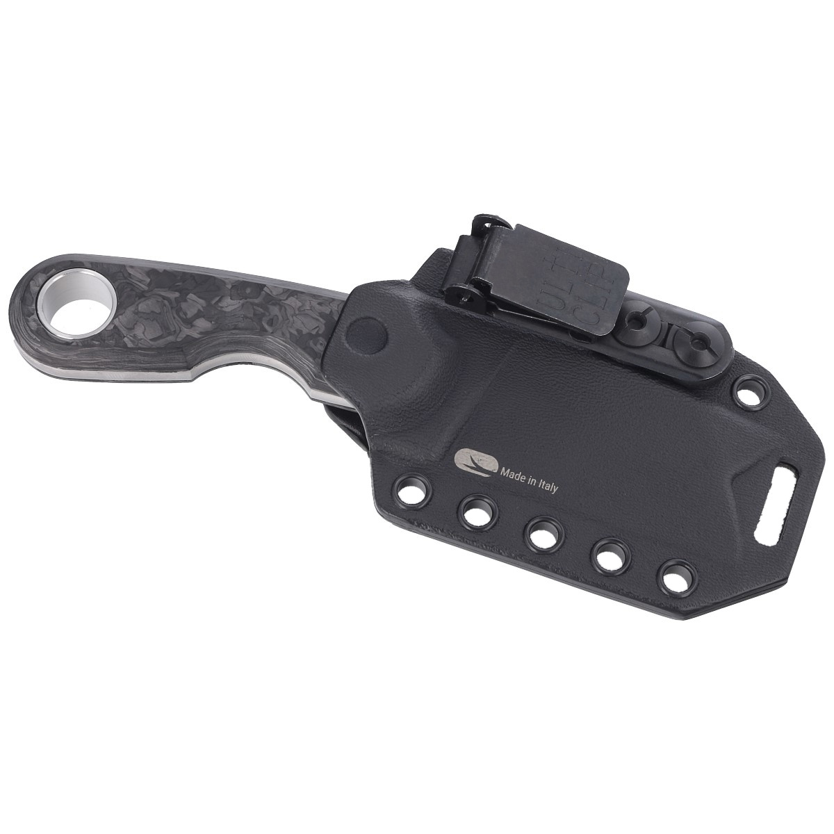 Sheath - when designing, great emphasis was placed on the ease of carrying and retrieving the knife. Flat, lightweight holster made of Kydex plastic. It comes with UltiClip, a practical multi-position clip suitable for attachment to a pocket or to a trouser belt. This allows the Berus to be used as a clinch pick (a short knife for ultimate defense in the clinch). Clinch Pick knife, a destructive tool in direct contact, ideal for self-defense also from a sitting position. In addition, the sheath is compatible with the Tek-Lok mount as well as can be hung around the neck like a neck knife.