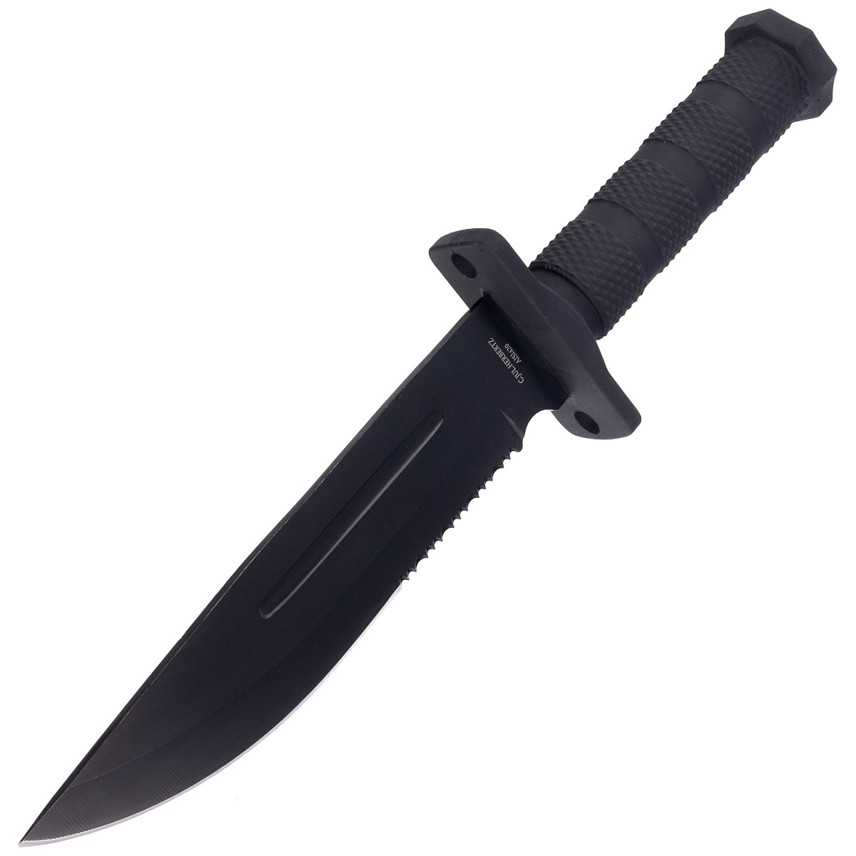 Blade - a solid Straight Back, Combo type blade with a long, serrated part of the cutting edge. Concave grind (Hollow Grind) gives excellent cutting edge geometry and extreme cutting performance. The blade has been black-coated. Reinforcement on both sides stiffens the entire blade giving it high strength.