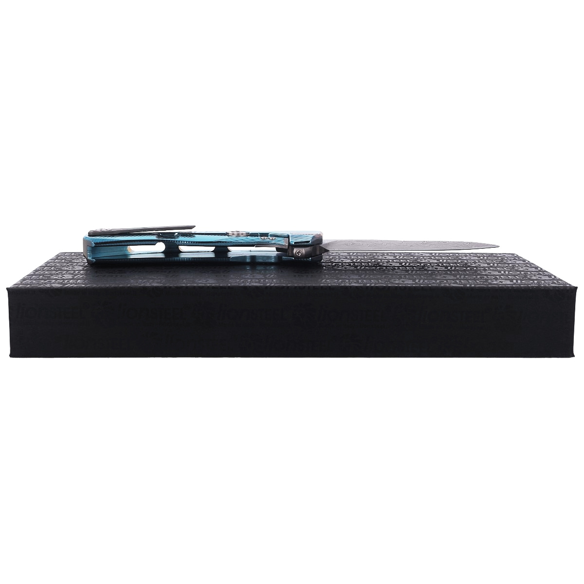 - ROK Blue Titanium, Scrambled Damascus LionSteel knife with Solid® technology. An extraordinary tool with intelligent and useful features. Proof of the highest quality in knife manufacturing. Winner of Blade Show magazine's Manufacturing Quality award.