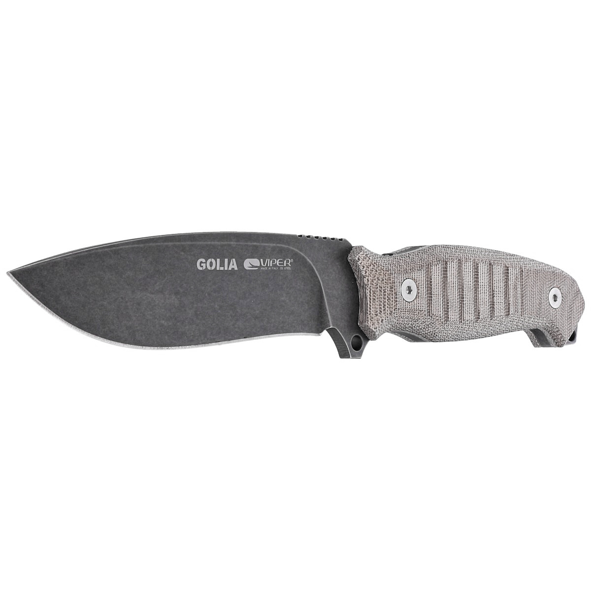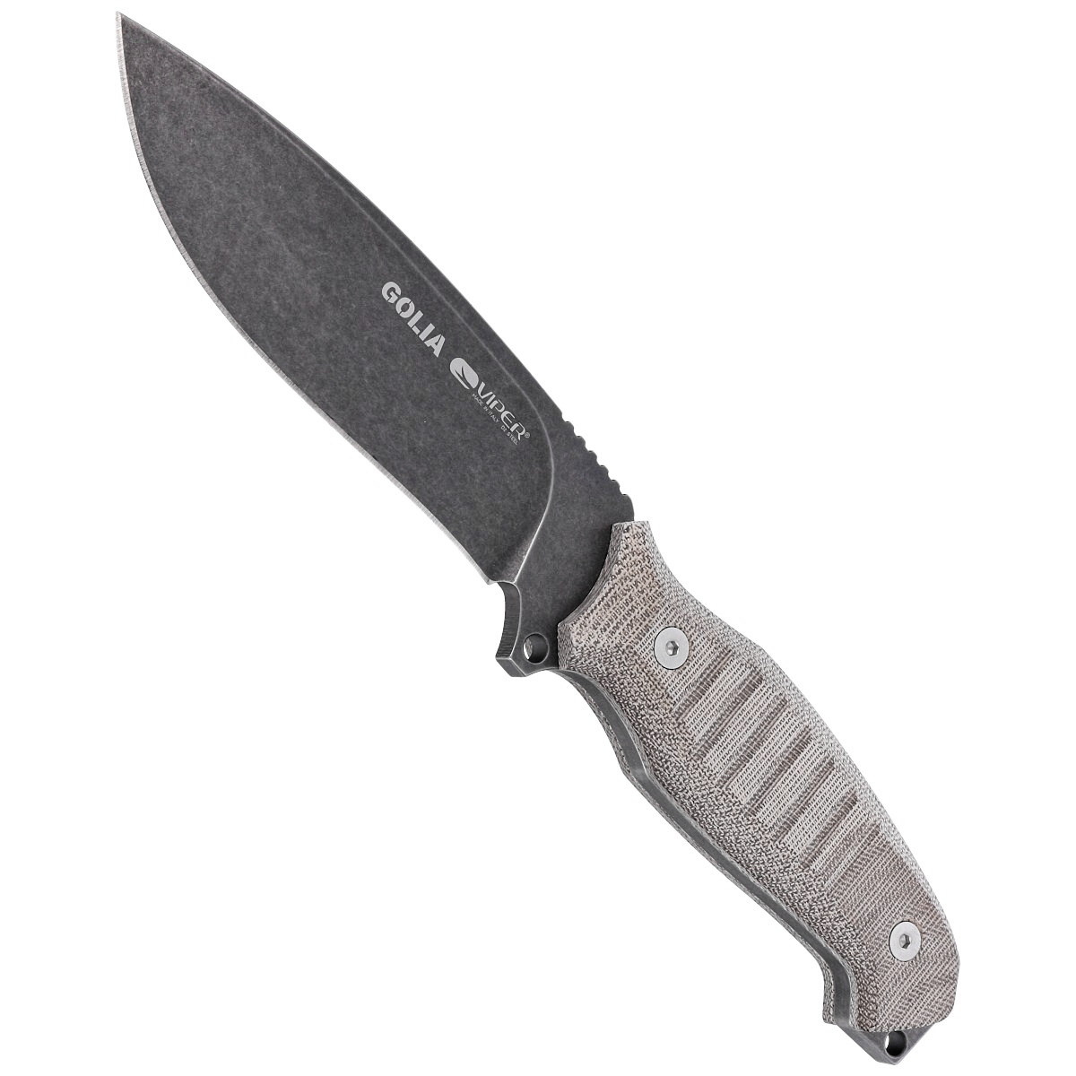 • Golia Evolution Green Canvas Micarta, Dark Stonewashed design by Tommaso Rumici large, sturdy knife with a fixed blade. Targeted at bushcraft, survival, hunting enthusiasts. Forged from a single piece of steel, the Viper knife will serve you for years!