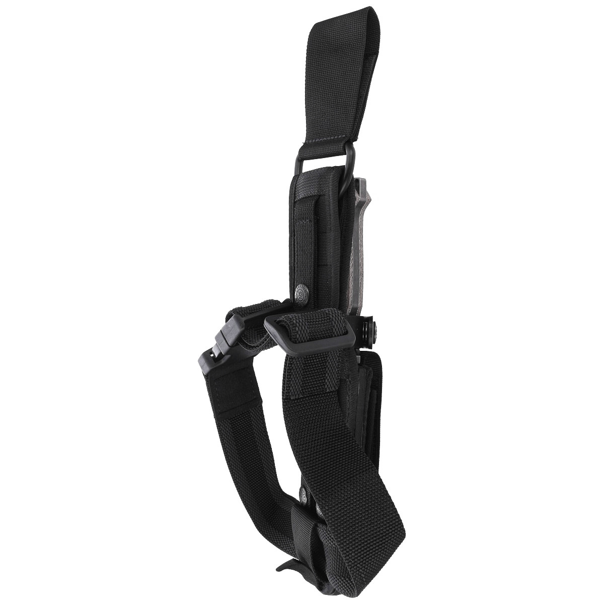 Sheath - with additional pocket for accessories: sharpener or flint. Made of water-resistant Cordura®. The snap-fastened holster well protects the knife from falling out. Allows attachment under the straps of the M.O.L.L.E. (Modular Lightweight Load-carrying Equipment) system, or on the belt. The lower part of the sheath with a DuraFlex buckle-type thigh band with rubber reinforcement prevents the sheath from moving on the thigh.