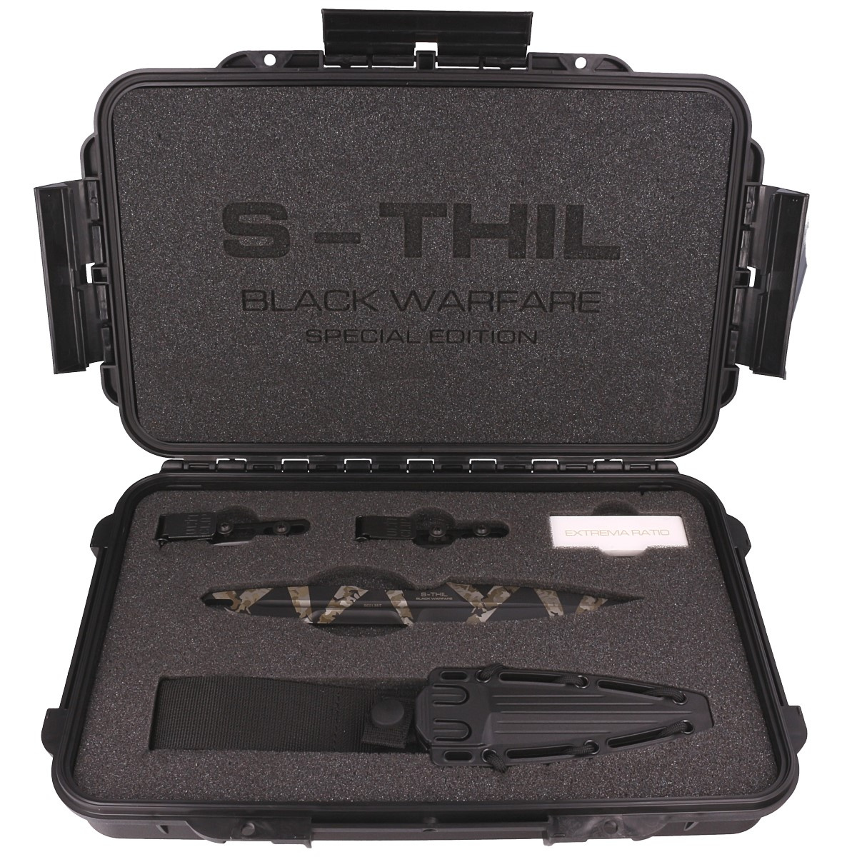 - S-THIL Black Warfare Special Edition. Spare tactical knife of monolithic construction, milled from 5mm bar of N690 steel. The Spear Point blade has been heat treated to 58 HRC for the best combination of edge retention and strength...