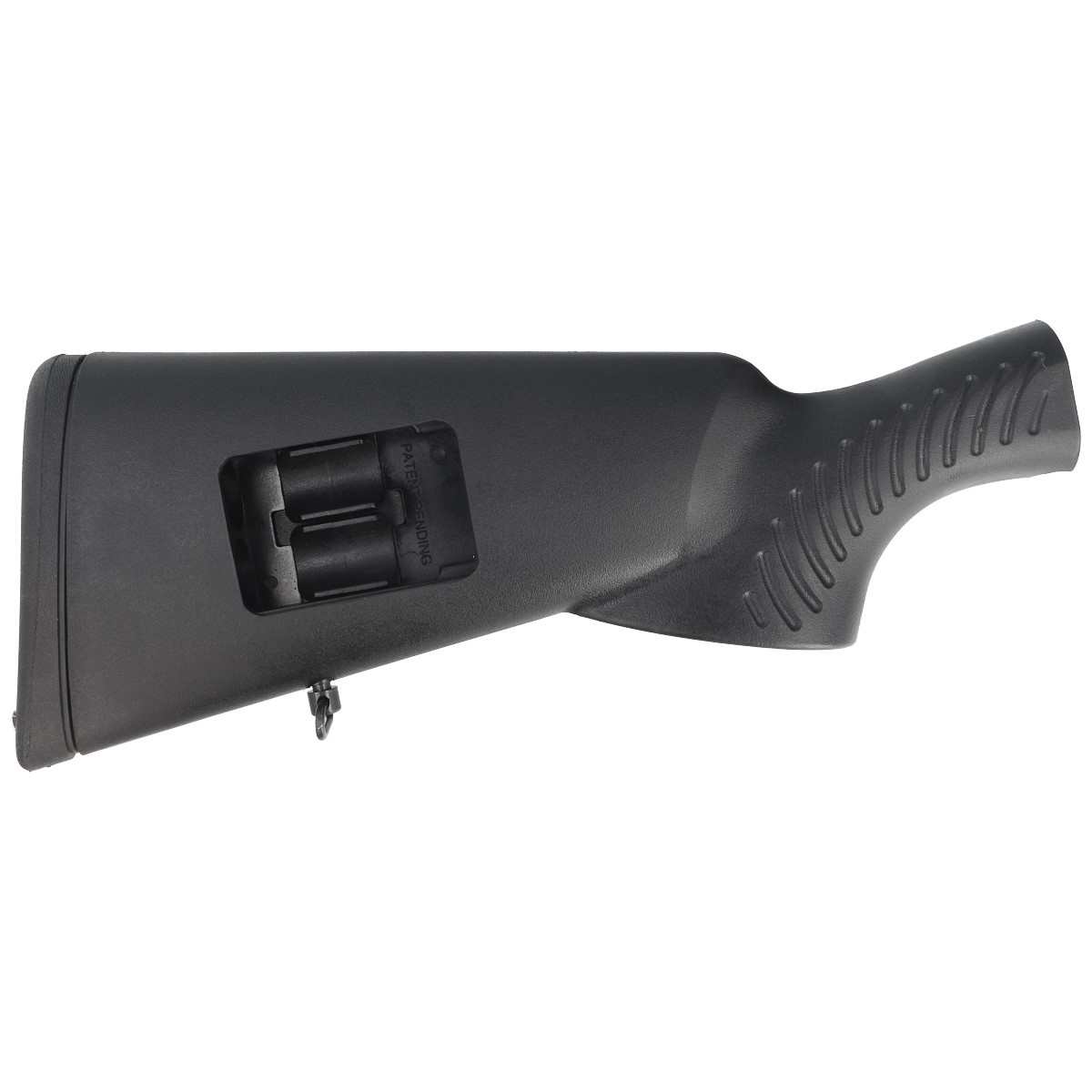 Flask tactical SHS (Shell Hold Stock) with an integrated loader for two cartridges. Made of polymer in color black. The flask is adapted for both right and left-handed people. Rubber foot on the butt for absorbing recoil energy after a shot is fired.