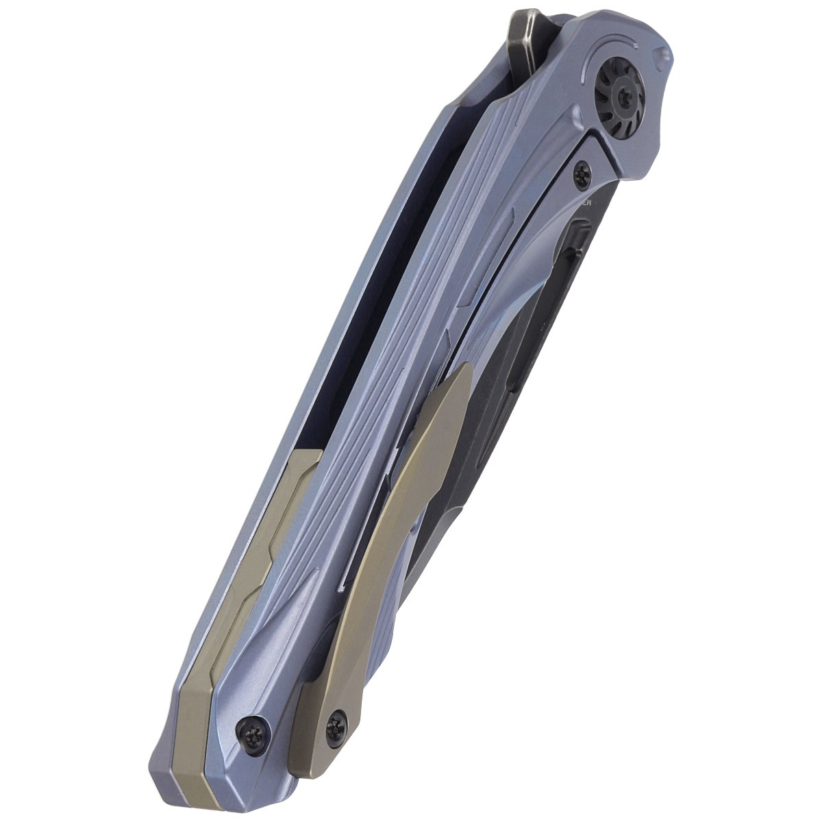 Wibra Blue Titanium, Black Stonewashed large and strong, and at the same time exceptionally light 92 g. An EDC folder addressed to demanding customers, the result of cooperation between the Polish designer Grzegorz "Kombou" Grabarski and the Bestech Knives company. Elaborate titanium handle, excellent blade steel!
