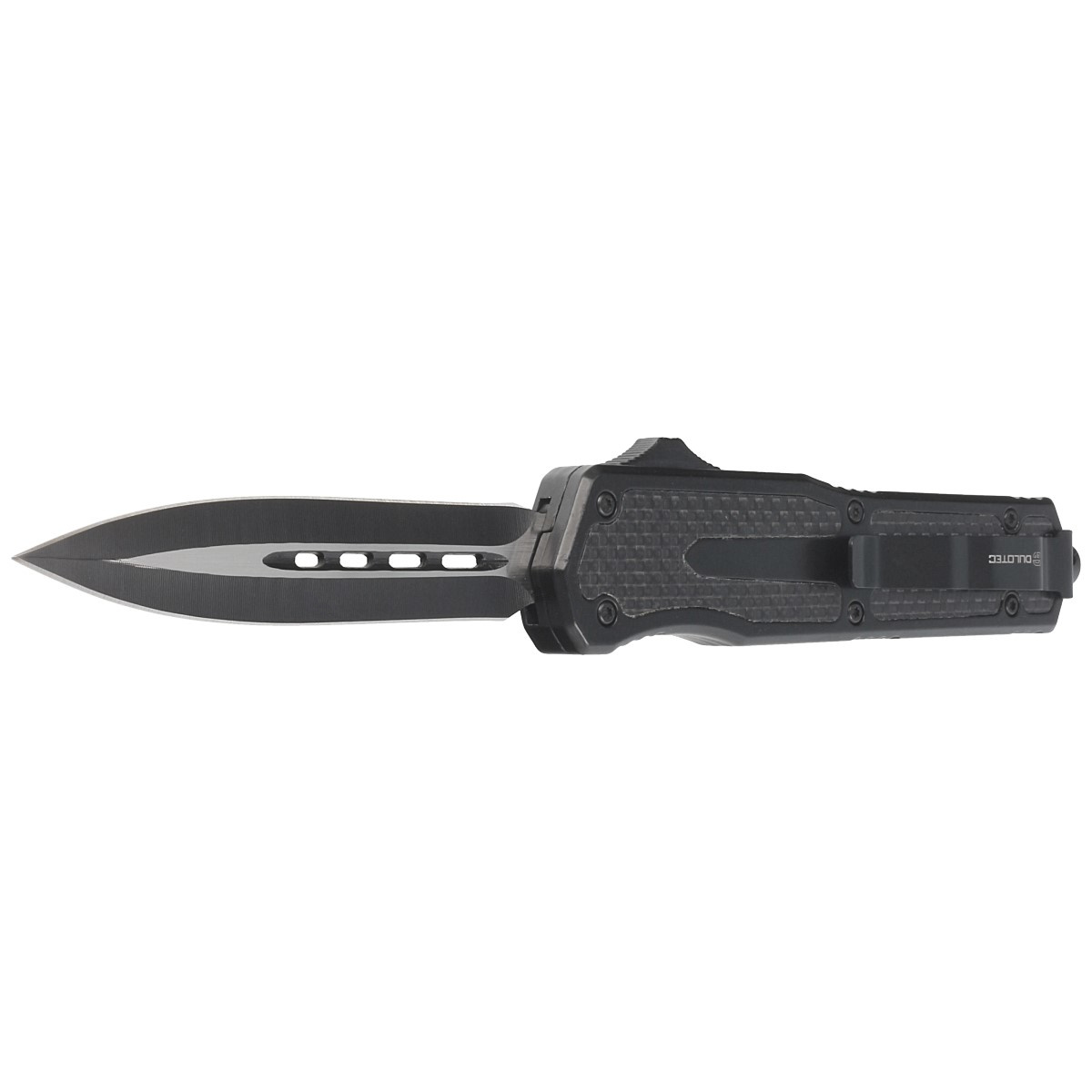 - Dulotec OTF Dagger Aluminum / Carbon Fiber, Two-Tone automatic OTF (Out The Front) knife operating in D/A (Double Action) mode, i.e. with a slider you extend and retract the blade. Strong construction, reliable operation and reasonable price. Bestseller!