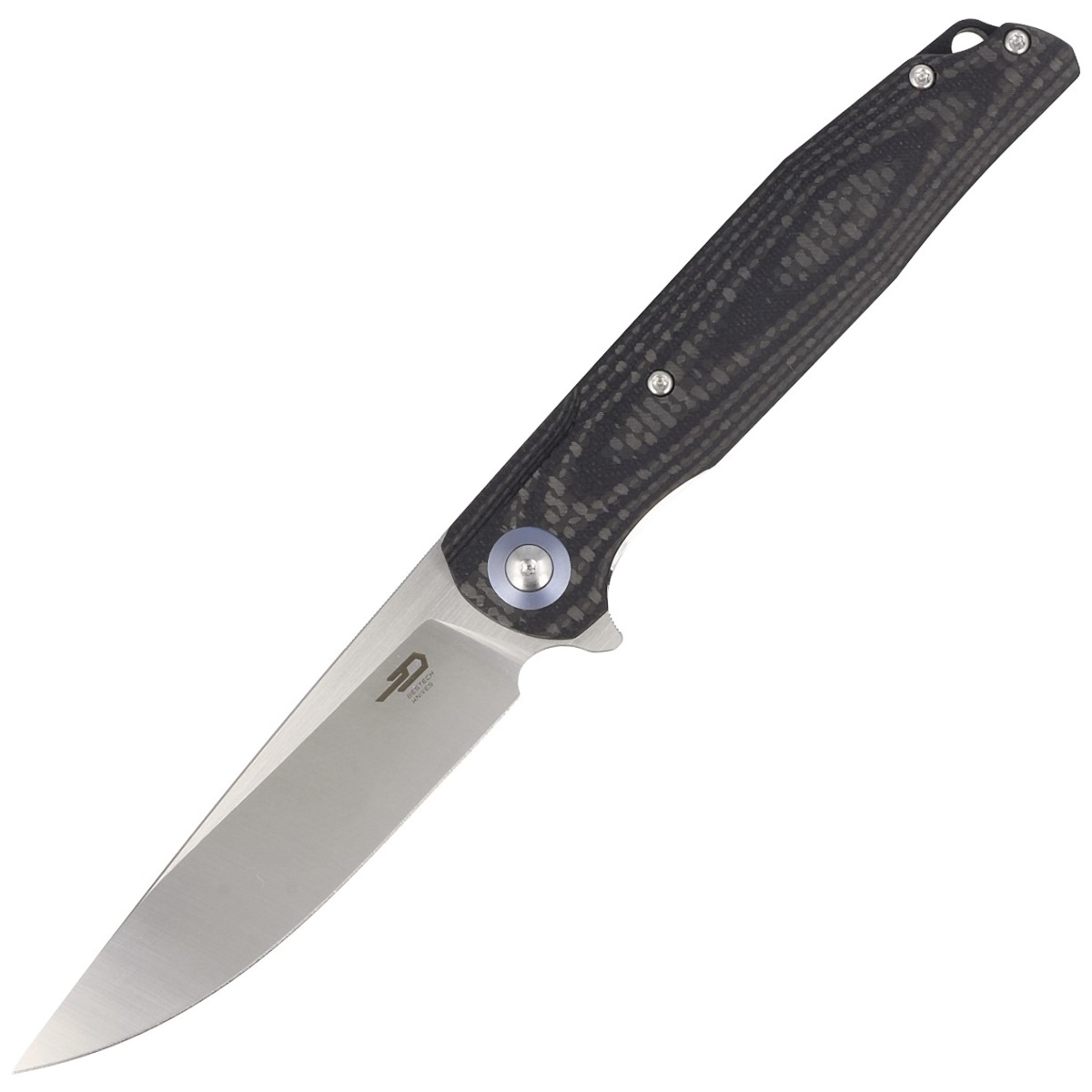 Ascot Carbon Fiber / Black G10, Satin an elegant EDC folder with versatile use. Featuring G10 and Carbon facings on the Handle grips, a long Blade made of proven D2 tool steel, all at an excellent price and quality from Bestech! Bestech!