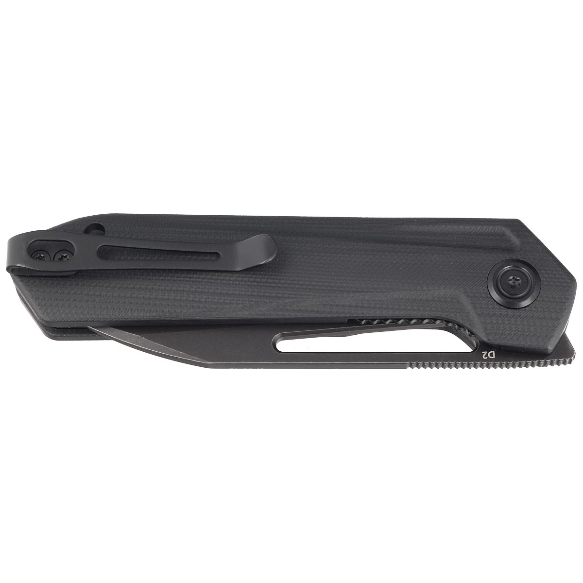 Royal Black G10, Dark Stonewashed is a precisely designed lightweight EDC folder by Colin Maisonpierre. Its Blade is made of high quality D2 tool steel, which is characterized by high resistance and excellent edge retention. The ergonomic G10 composite handle provides a secure grip even if your hand is wet. The texture of the material prevents slipping in the hand, guaranteeing stability and comfort. The opening mechanism is based on a precision-made front flipper and a hole in the blade, which allows the blade to unfold quickly and smoothly. A solid clip facilitates discreet carrying.