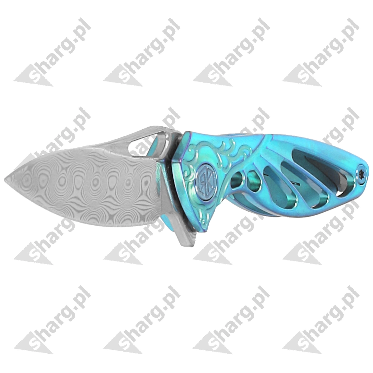 Blade - drop point type, finished with an etching highlighting the unique damascene patterns The small thickness of the blade combined with the high flat grind (Flat Grind) gives an excellent cutting edge geometry and extreme cutting performance. Ceramic ball bearings support the smooth operation of the opening mechanism of the blade, which can be opened with a quick flipper flipper (index-finger flipper), so it can be used by right and left-handed people without any problems. It can also be opened using the hole in the wedge. The whole thing is locked with a proven and popular frame lock with a steel insert to prevent the lock face from rubbing off.