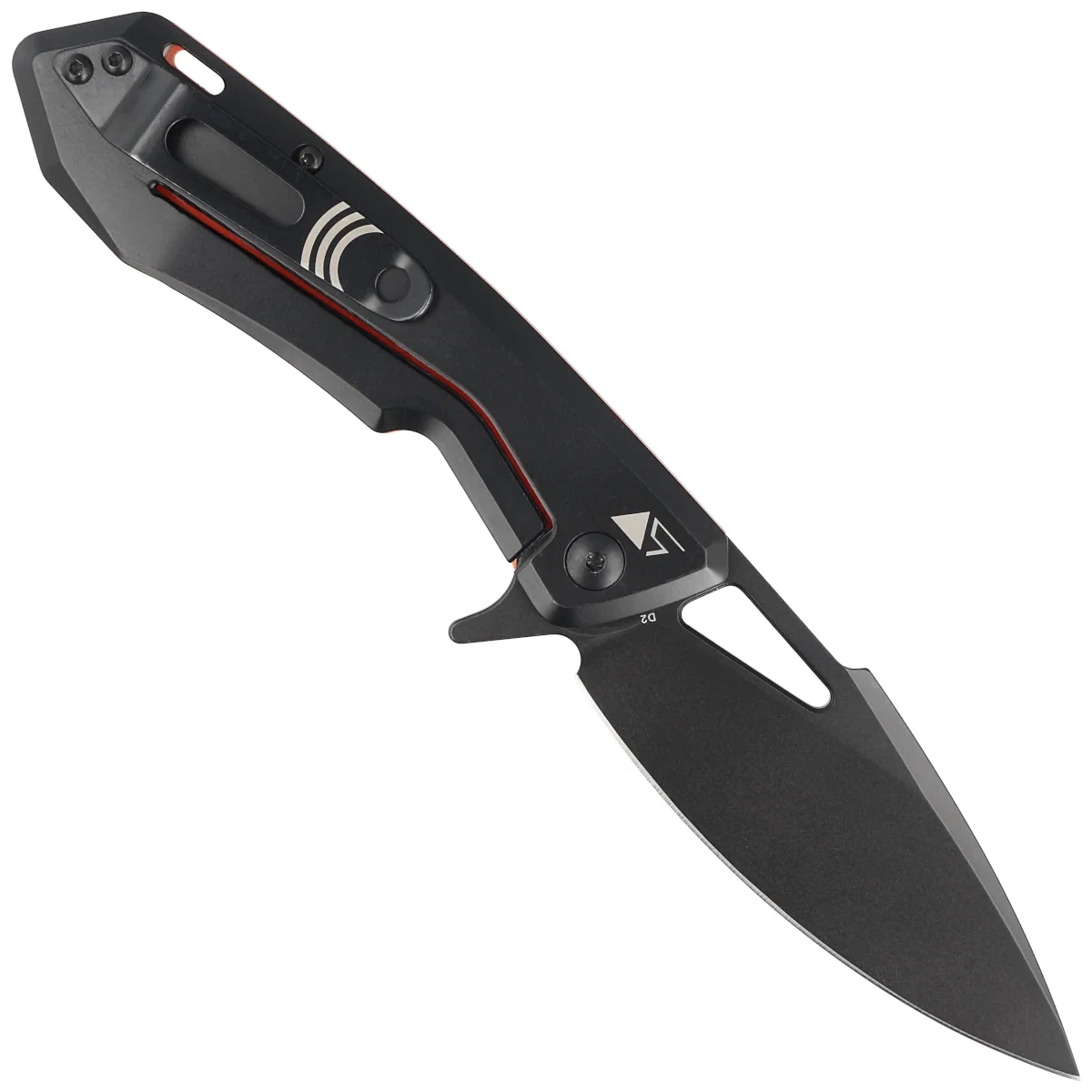 - Pelican Orange G10 / Black Steel, Black D2, a sturdy EDC folding knife. Utility drop point Blade made of D2 tool steel, Flipper for opening and Handle made of virtually indestructible G10 plastic. This knife will never let you down!